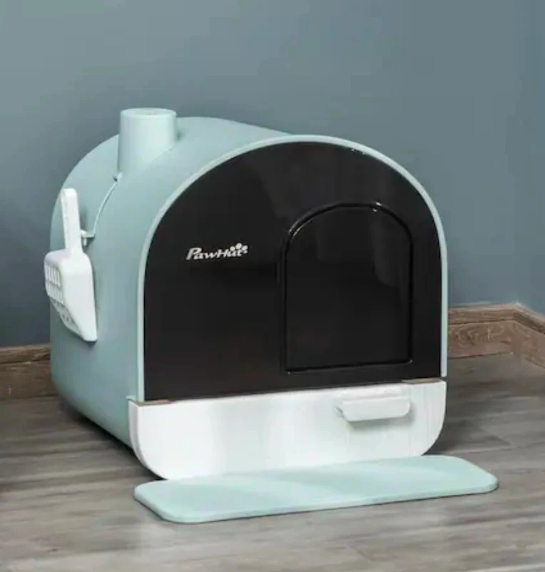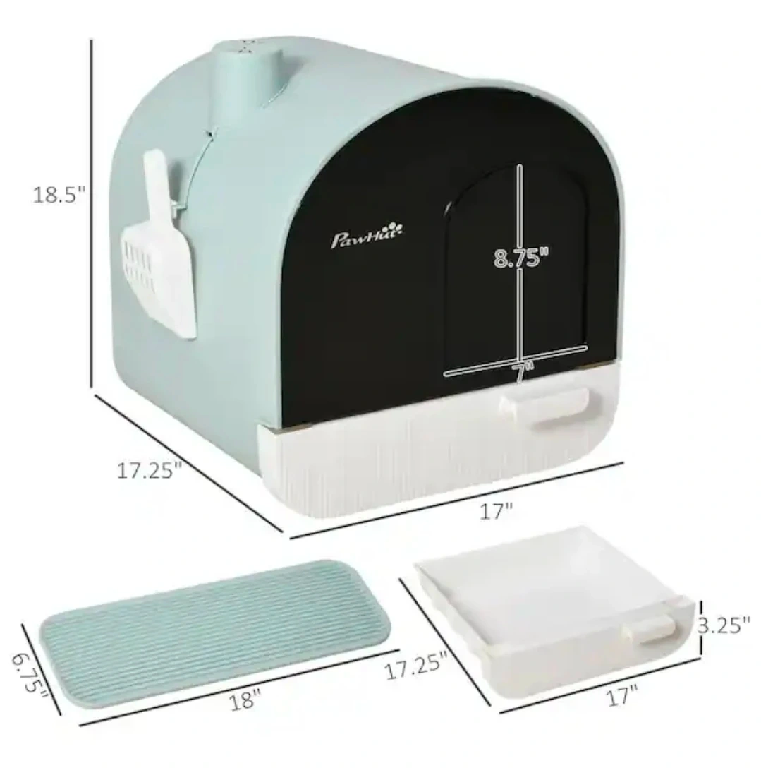 PawHut Enclosed Cat Litter Box with Scoop and Mat
