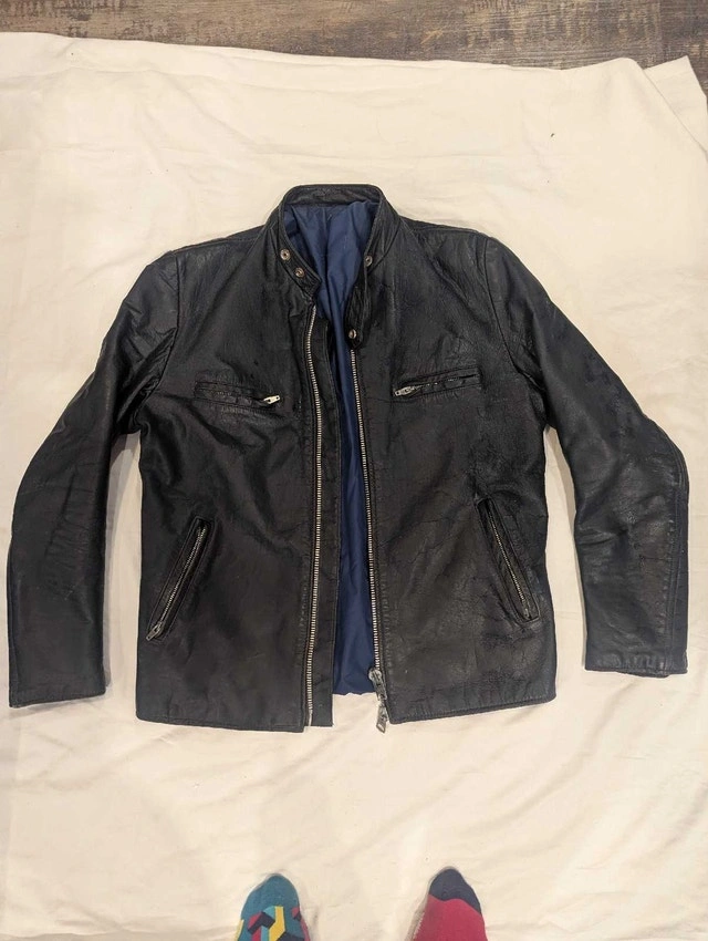 Motorcycle jacket from the 70s, it was my dad's. He rode motorcycles his whole life. It doesn't fit me and I'd like to see someone enjoy it. It's a small/medium fit. I can't find any logos or markings. Looking to get around $150 for it, but I am open to reasonable offers.
