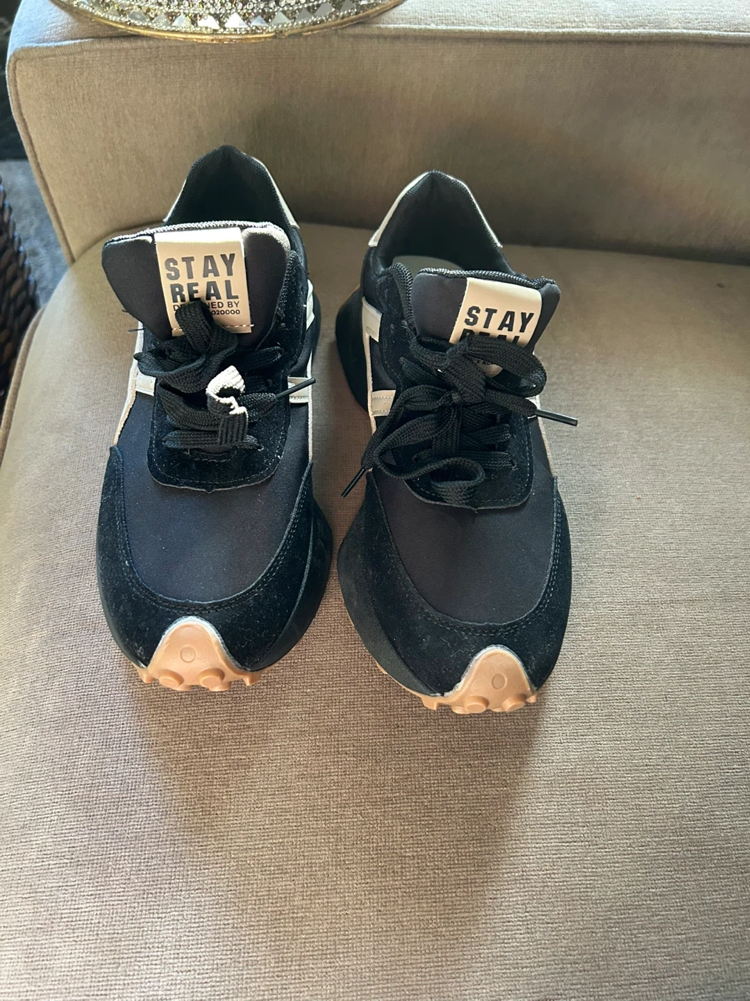 New Balance "STAY REAL" Black & Tan Fashion Sport Shoes