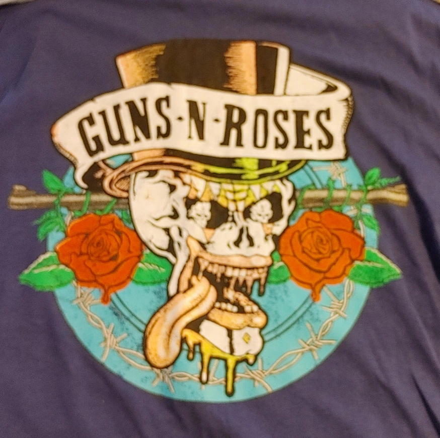 Men's blue and gray Guns N' Roses hoodie in size XL. Excellent condition. New never worn with tags still attached. No rips or fraying. Has drawstring on the hood. Smoke free home pick up Mt.Brydges cash only.