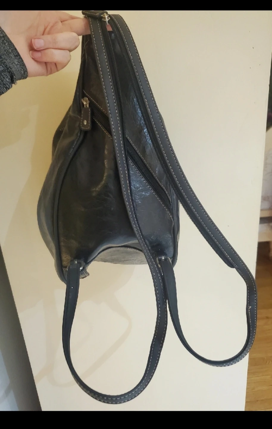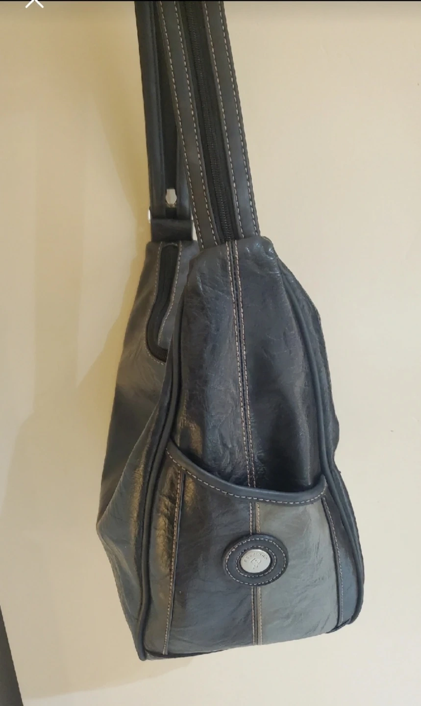 This is a stylish women's shoulder bag with a leather exterior. It features multiple zippered pockets for organization. The adjustable strap ensures a comfortable fit. It's a versatile bag for everyday use!