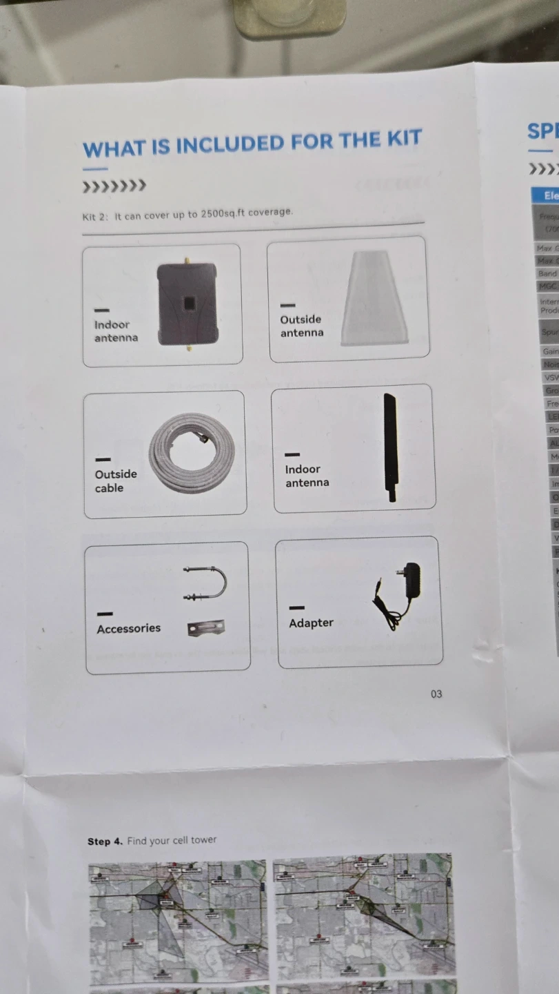 This kit includes an indoor antenna, outdoor antenna, outside cable, adapter, and accessories. It can cover up to 2500 sq ft.
