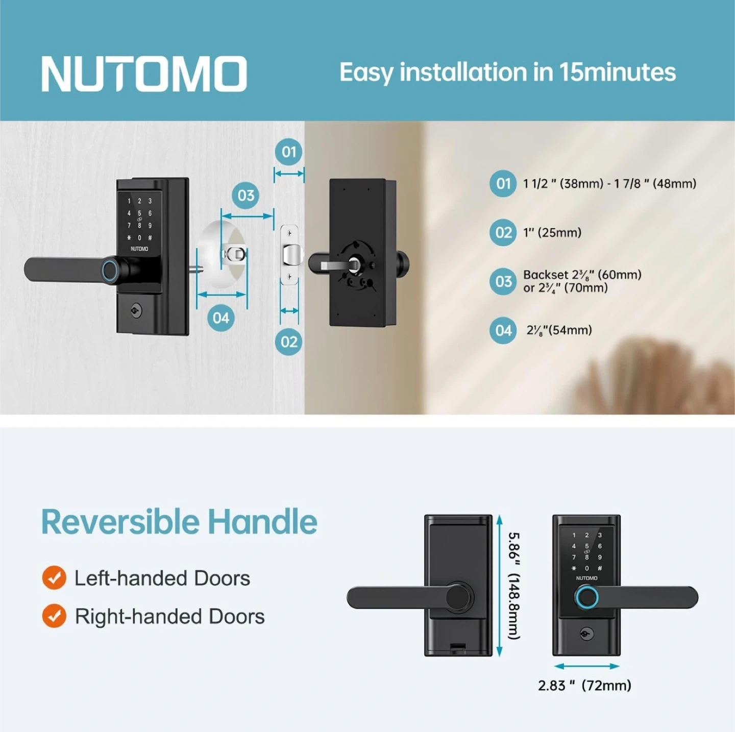 NUTOMO Smart Wi-Fi Deadbolt with Handle - Model H4