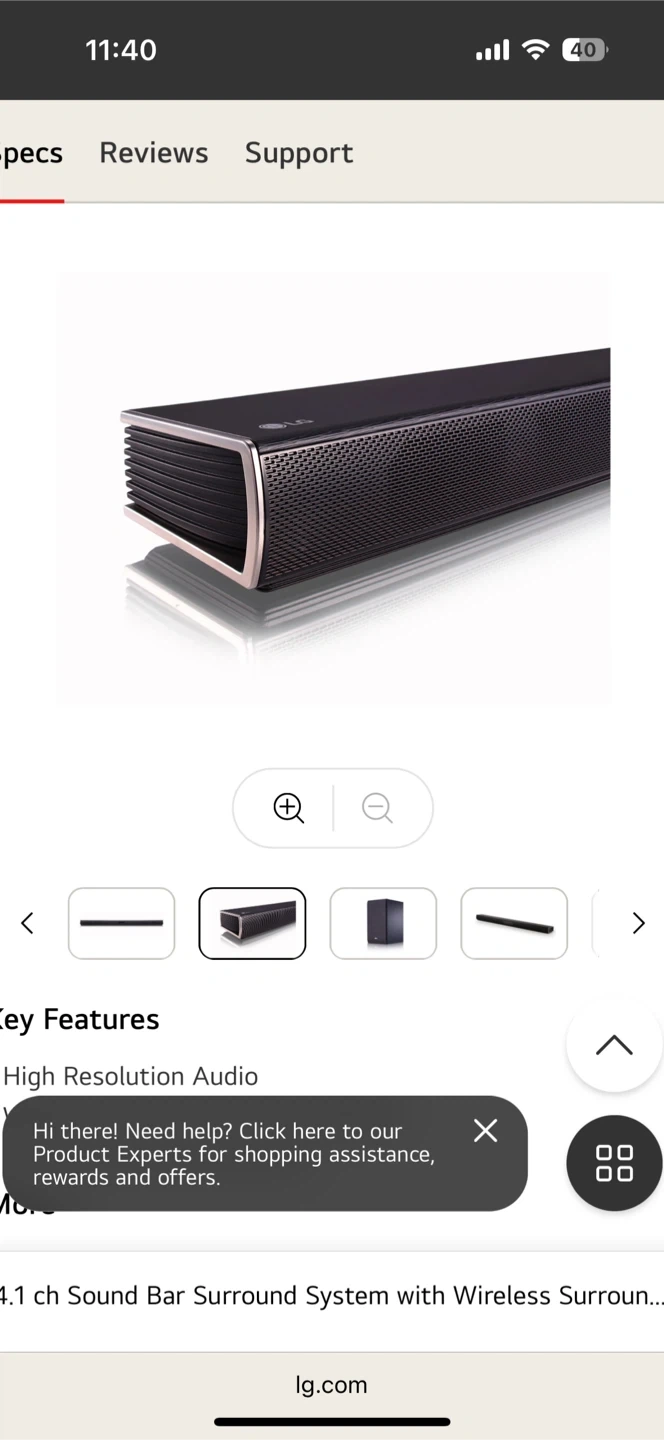 This LG SJ4R sound bar system features high resolution audio and wireless surround sound speakers. It includes a sound bar, subwoofer, and two wireless surround speakers. It's great for enhancing your home theatre experience!