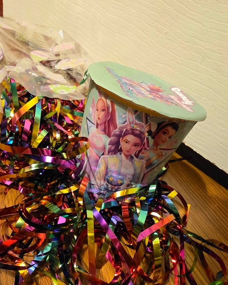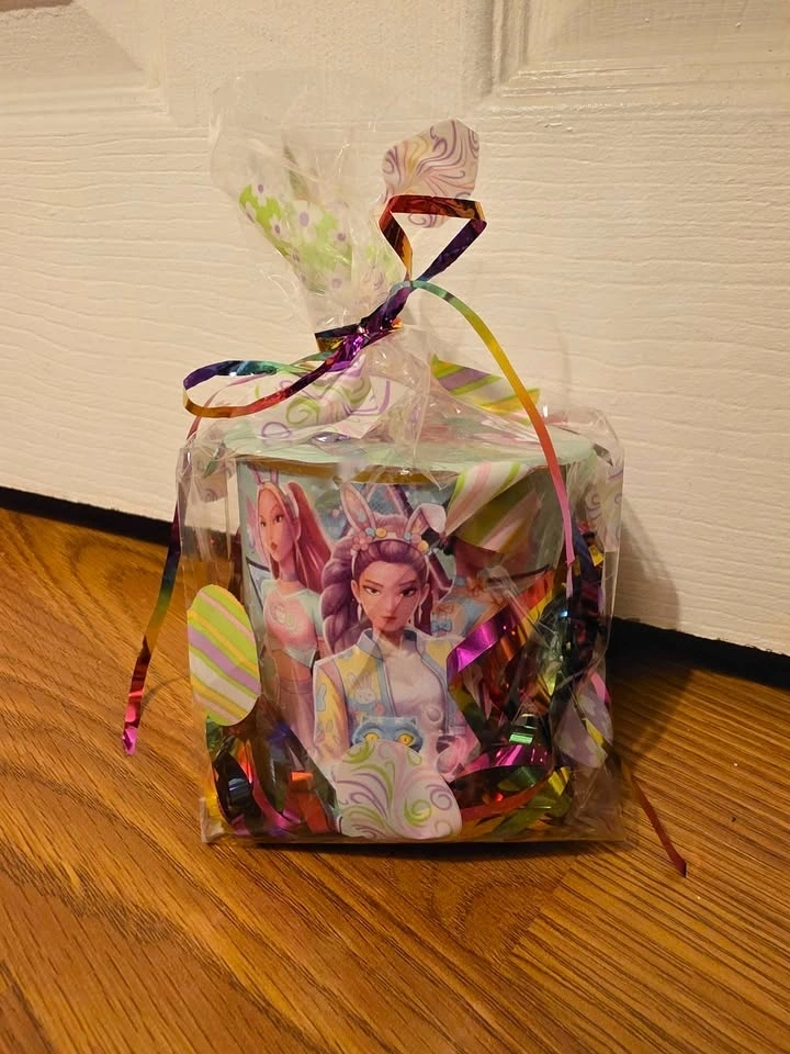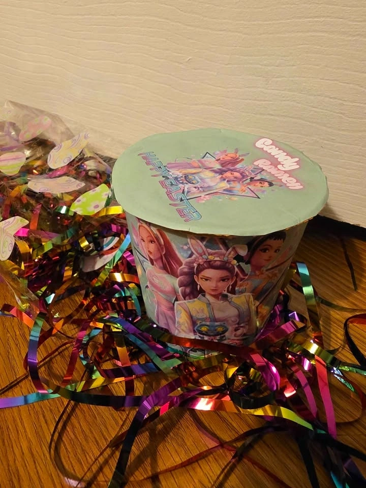 Each Candy Ramen Cup comes with candy chopsticks, gummy noodles, popping candy, and strawberry candy gel. Each cup includes a K-pop Happy Easter label! Perfect for kids who love K-pop Demon Hunters or Huntrix. Great to add to an Easter basket!