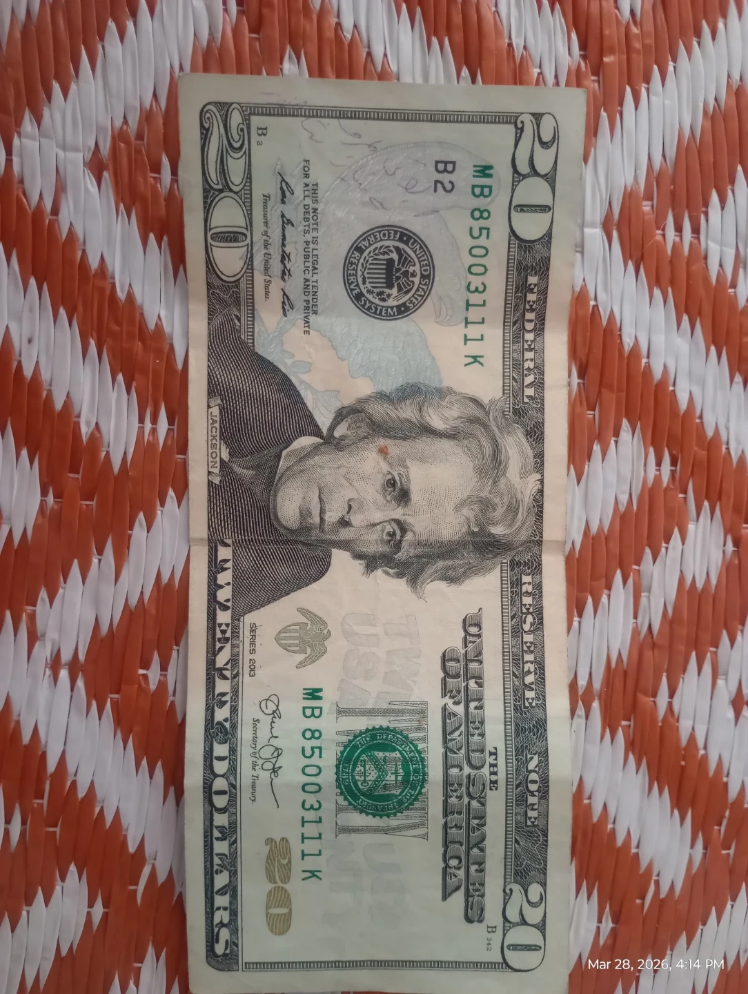 One United States 20 dollar bill. Features President Andrew Jackson. Series 2013.b2 series with unique number 311 - 500 and 111 at the end for those who collect unique number in currency only serious buyer respond it's a federal currency a original 20 dollar bill