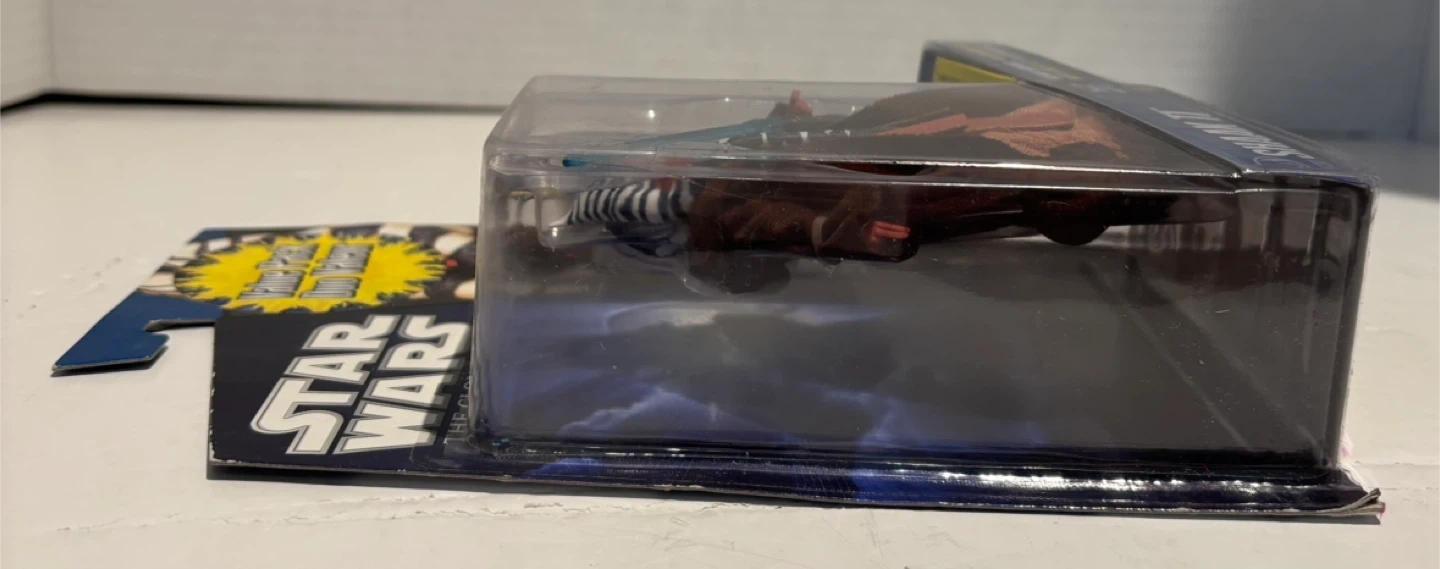 This Star Wars action figure features Shaak Ti from The Clone Wars series. It includes the figure, lightsaber, and a collectible card for the Galactic Battle Game. Recommended for ages 4 and up.