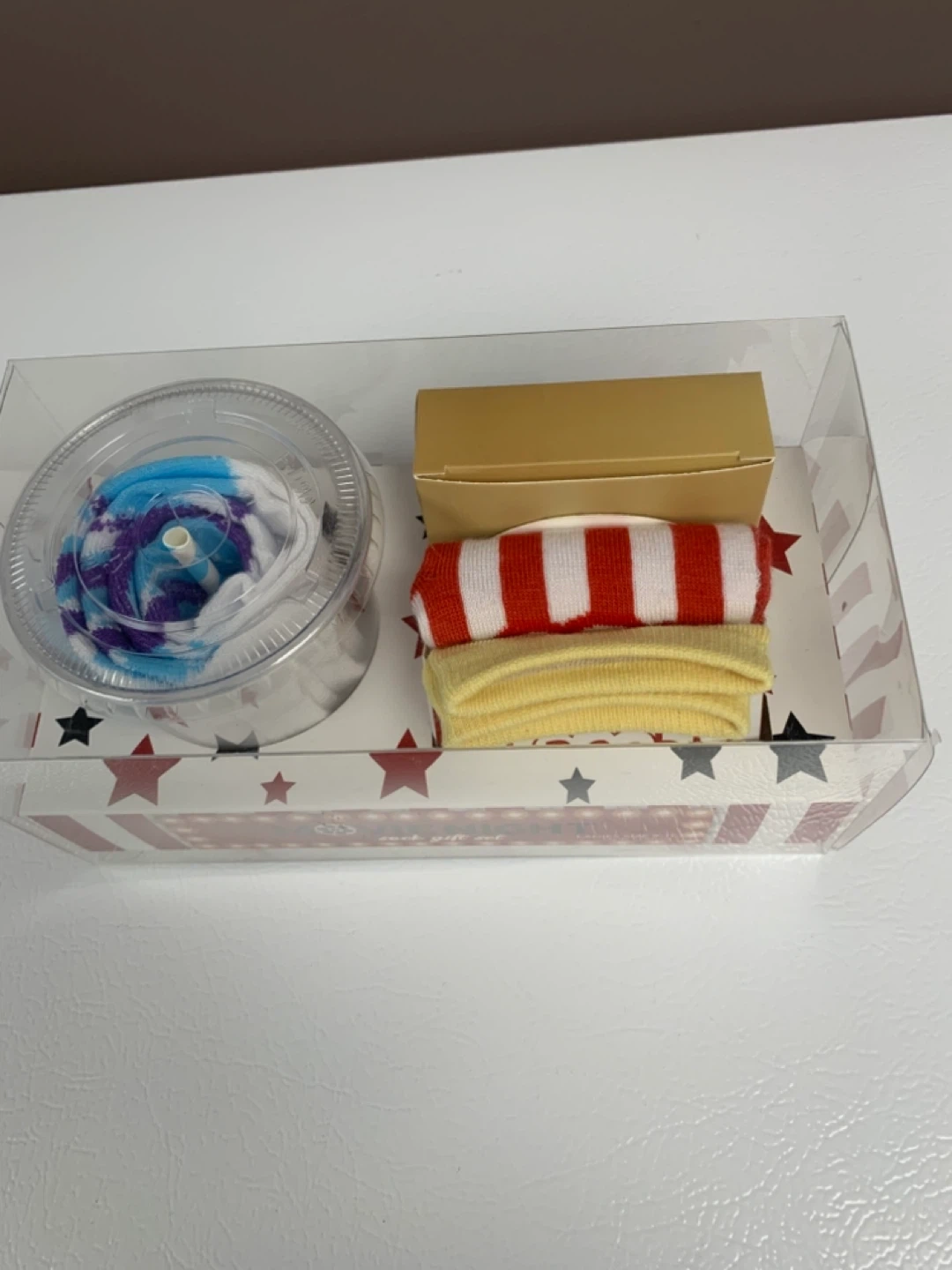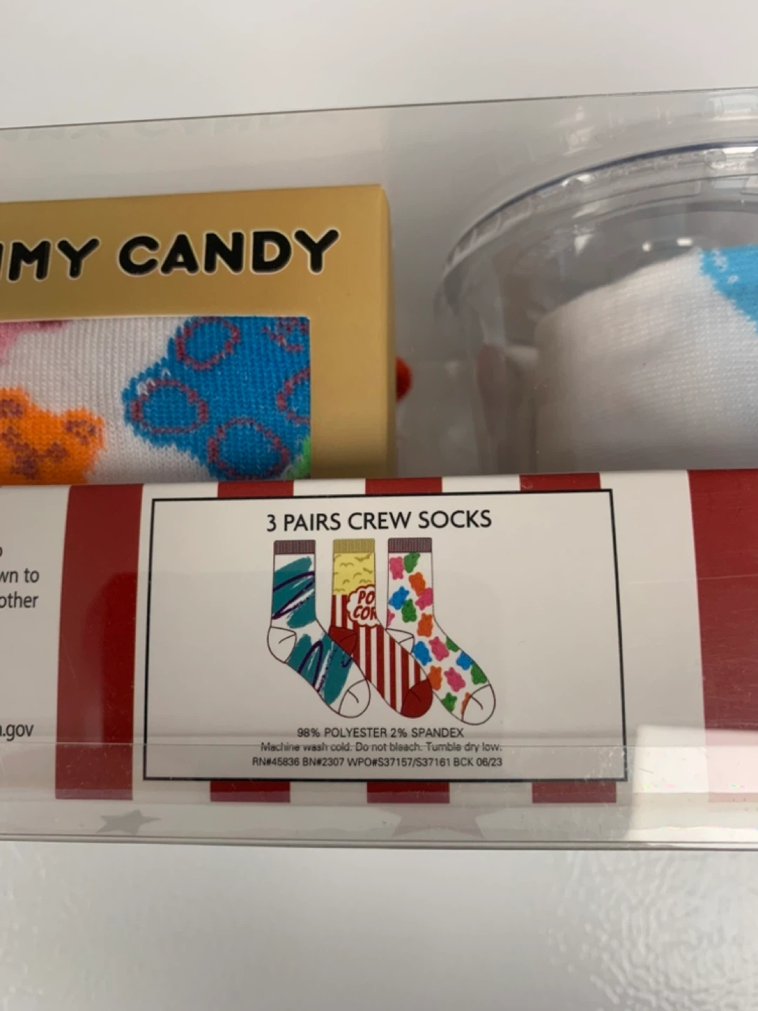 New"Movie Night" sock gift set includes three pairs of crew socks. Perfect Gift for someone who loves funky socks.