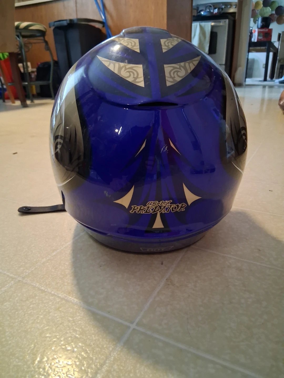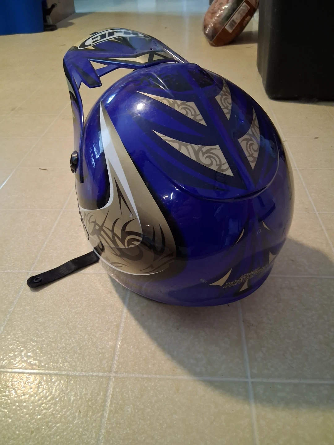 This is a blue HJC CS-MX Predator motorcycle helmet. It features a durable shell and comfortable interior padding. It's designed for off-road riding and protection. Size XL
