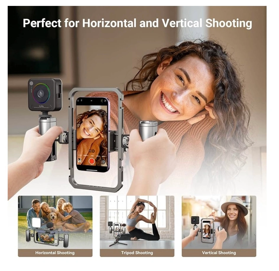SmallRig Universal Smartphone Video Rig for iPhone for Samsung, Filmmaking Vlogging Rig Aluminium Alloy Phone Video Cage Grip with Cold Shoe Mount for Videomaker Videographer - 2791B