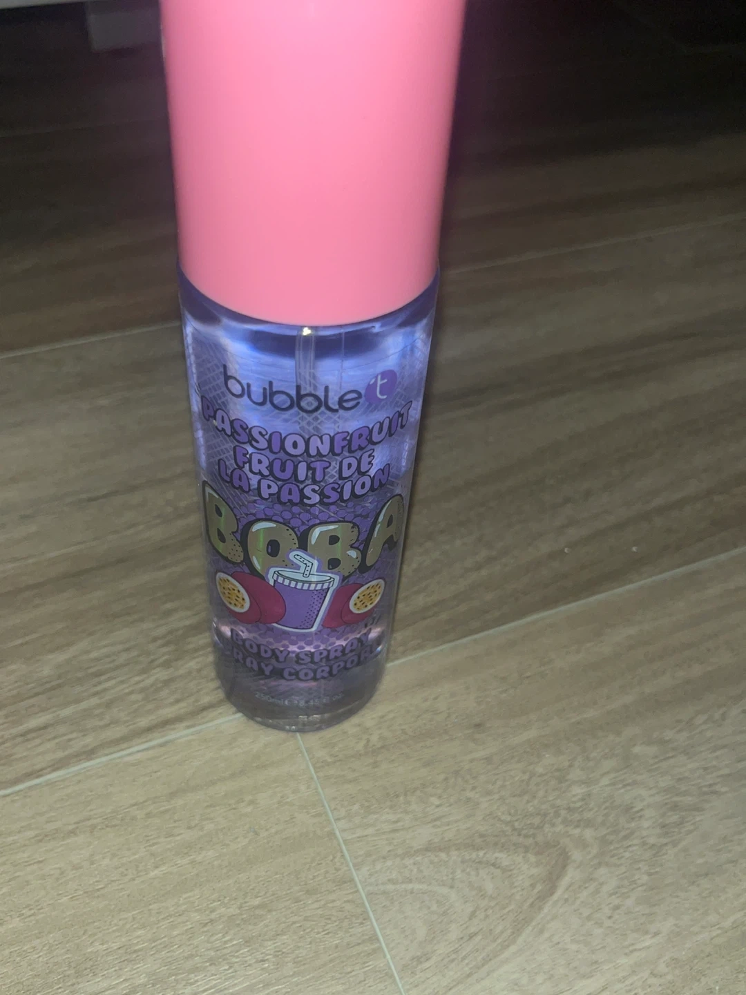 Bubble T Boba Passionfruit body spray. It has a sweet, tropical scent. Leaves you feeling refreshed all day!