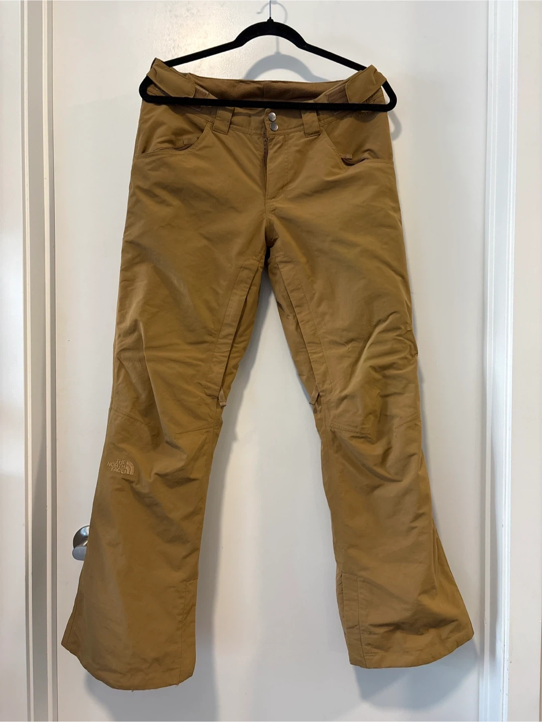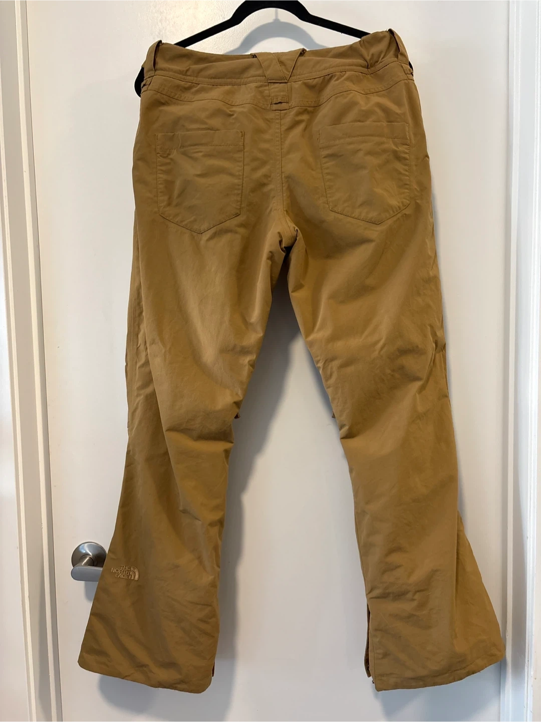 Selling a pair of North Face women's ski or snow pants in size medium! These hyvent pants are a tan colour and ready to wear. They have a comfortable fit, are in great condition, and perfect for keeping you warm with breathable features too.