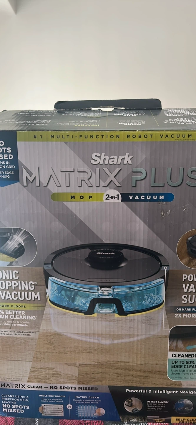 Smart Shark Matrix Plus 2-in-1 Robot Vacuum and Mop. This robot vacuum is super versatile, does both vacuuming and mopping. Comes with charging dock. Model RV2620WDCA/RV2620WKCA.