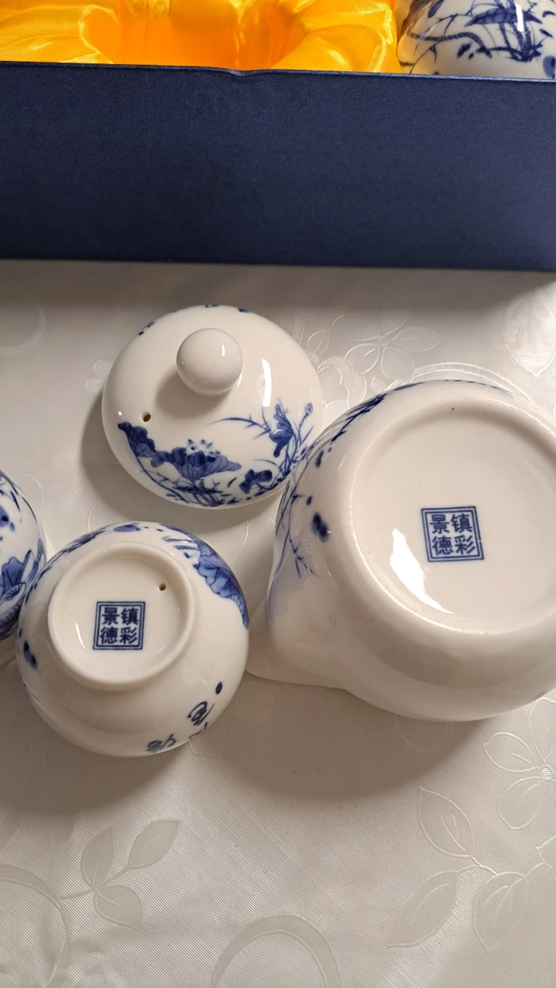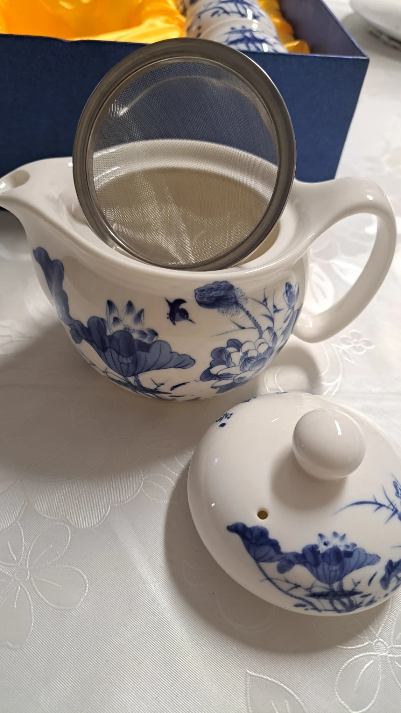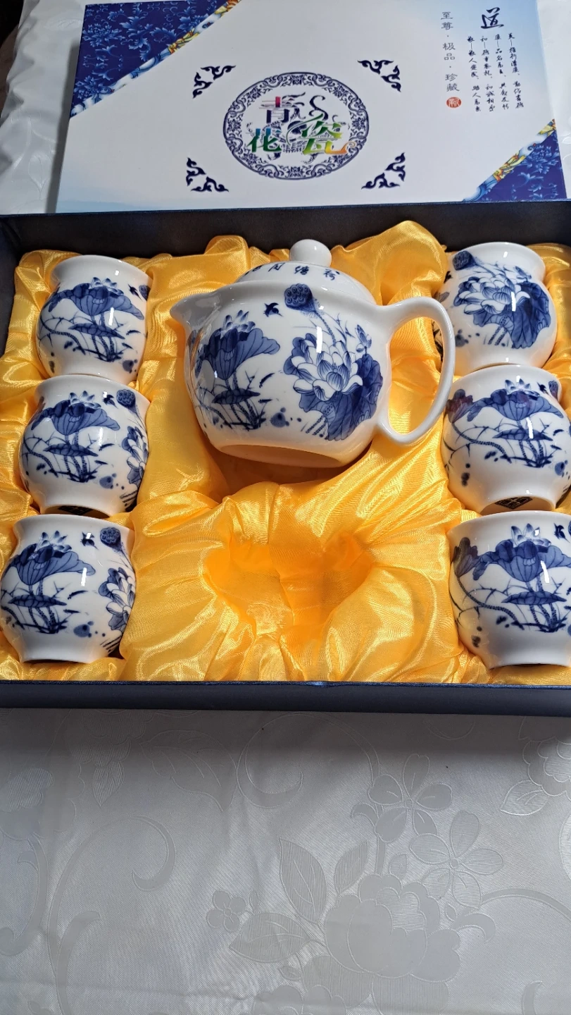 🥕Blue and White Lotus Tea Set with 6 Cups
