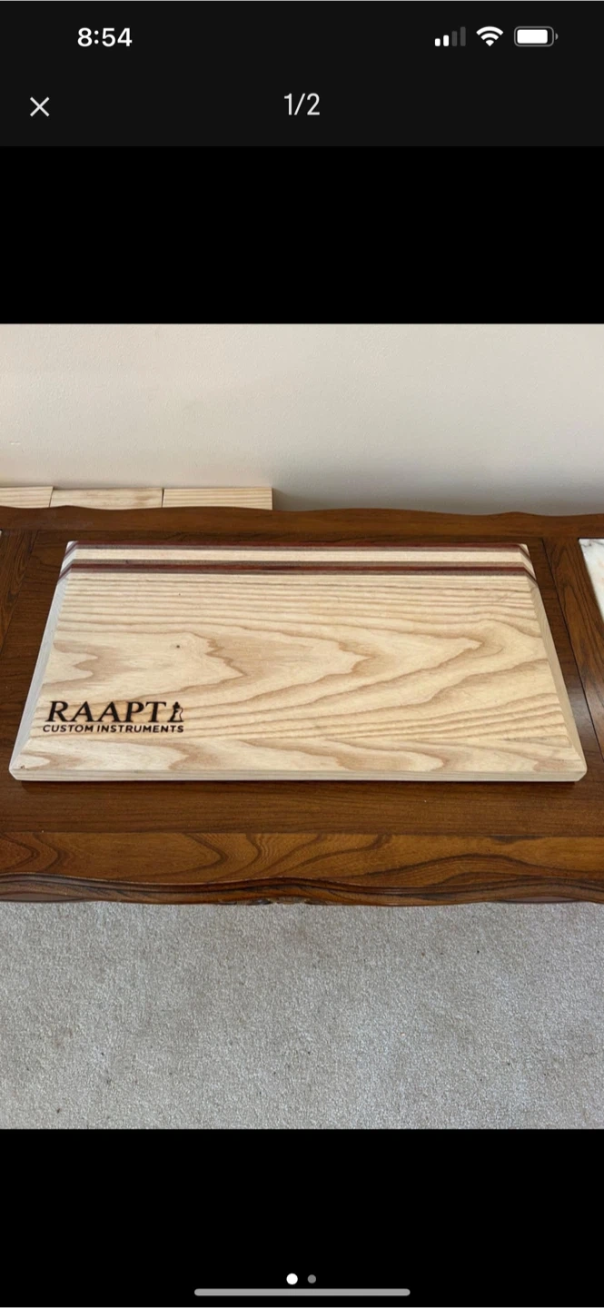 121Selling a RAAPTA Custom Instruments cutting board. It features a beautiful wood grain pattern with different wood tones. It's in great condition and ready for a new home Real wood board, 21”by12”