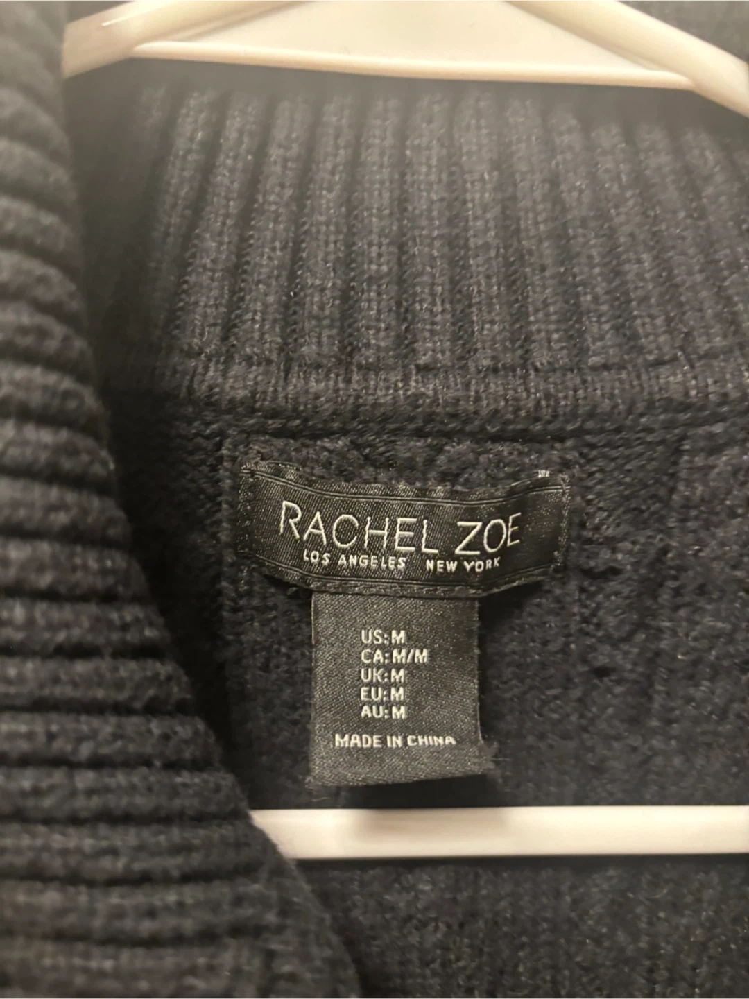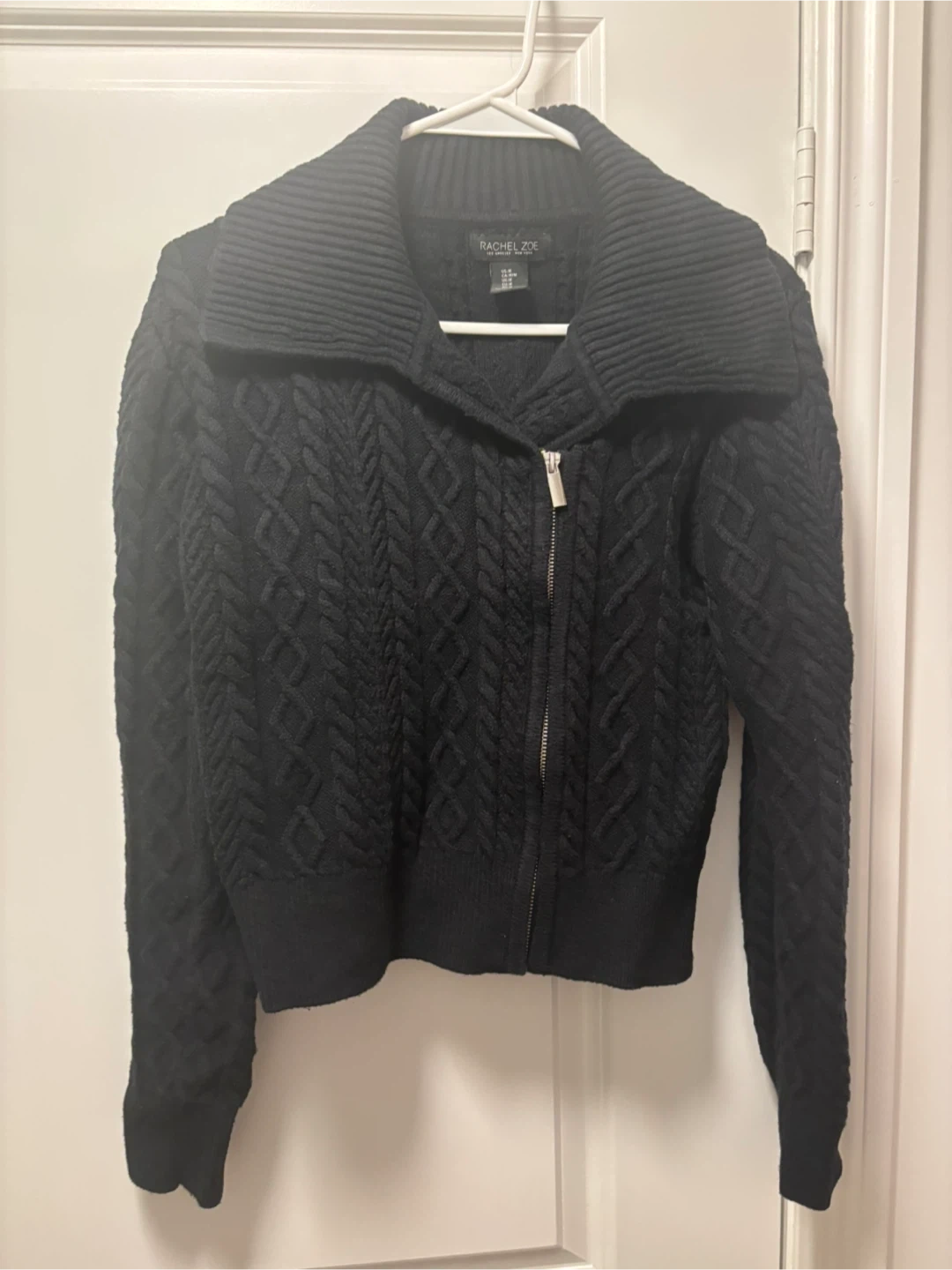 102A stylish black cable knit cardigan from Rachel Zoe with >50% cotton. It's a size medium and in great condition. Perfect for layering or wearing on its own!