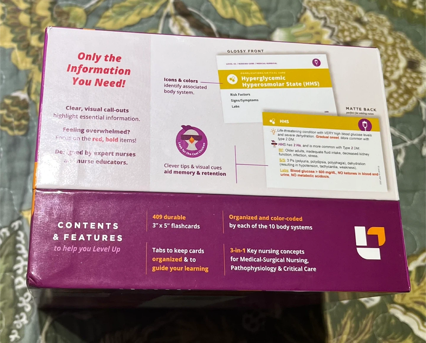 These are Level Up RN Medical-Surgical nursing flashcards, Edition 3. The set includes 409 durable 3"x5" flashcards, organized and color-coded by 10 body systems. They cover 3-in-1 key nursing concepts for Medical-Surgical, Pathophysiology & Critical Care. This set is designed for nursing students and professionals looking to master critical information.