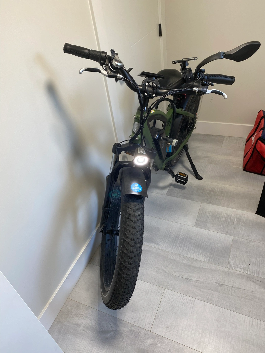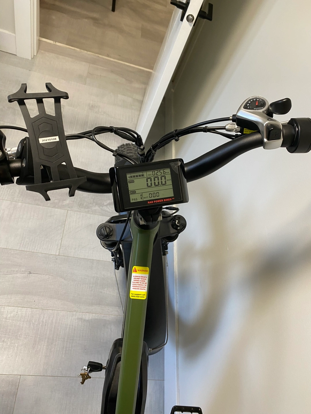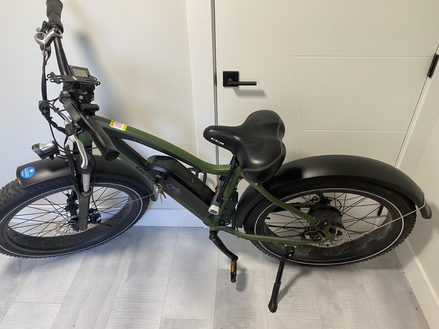 Rad rover fat tire bicycle only 256 km used. new and very good for food delivery purpose. I am moving so selling this one , Good for use , I will give helmet and other accessories like lock as well as extra seat. Best for recreation purpose to move around sea wall in downtown, you can attach back carrier so you can utilize to buy the grocery purpose , And Very comfortable to ride best power and great comfort.