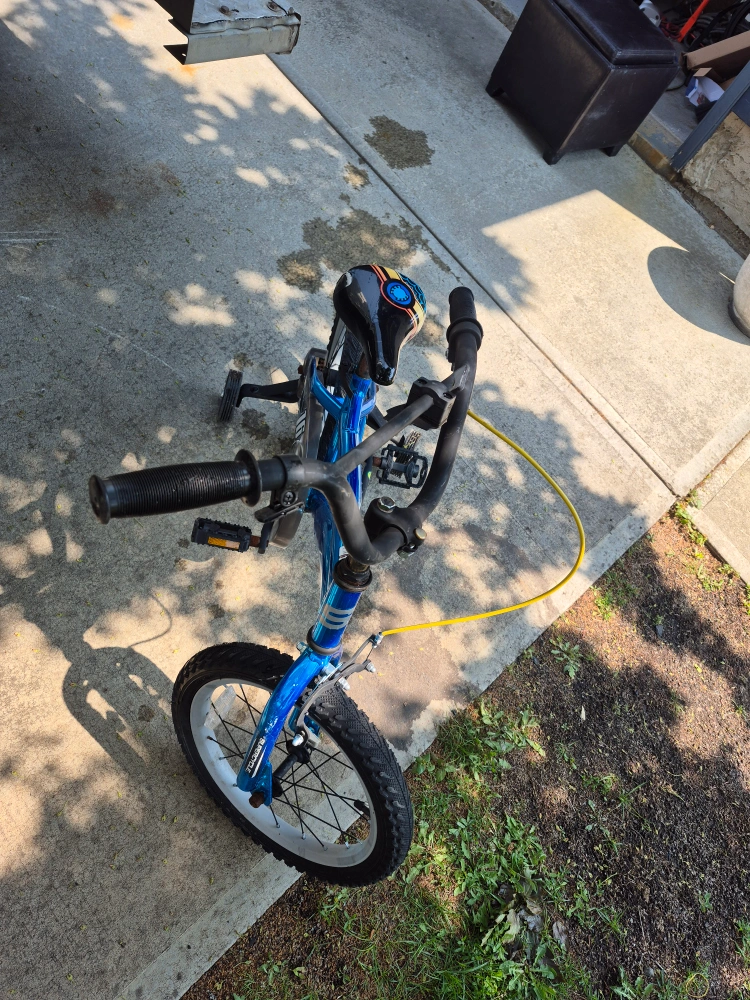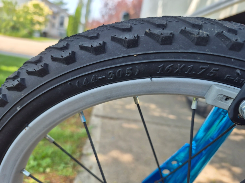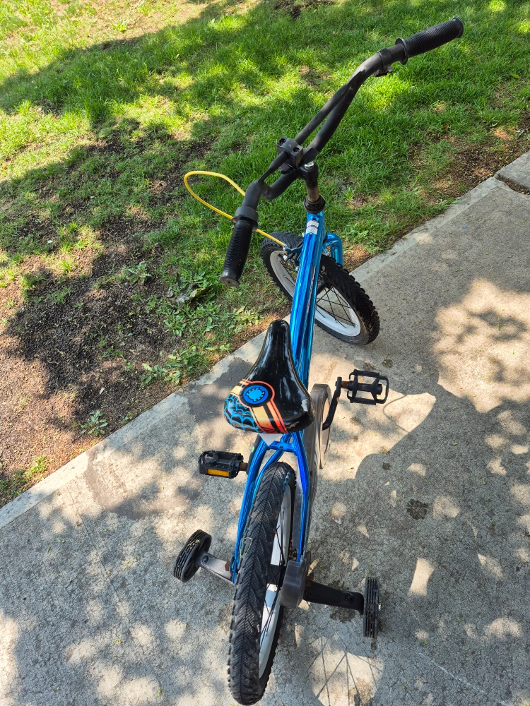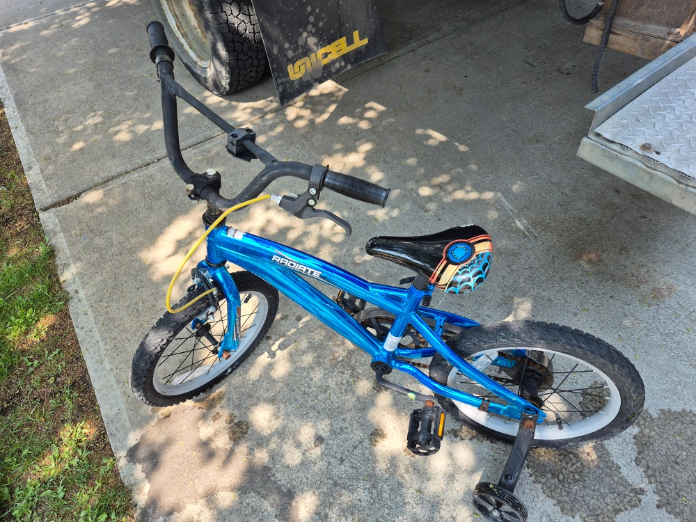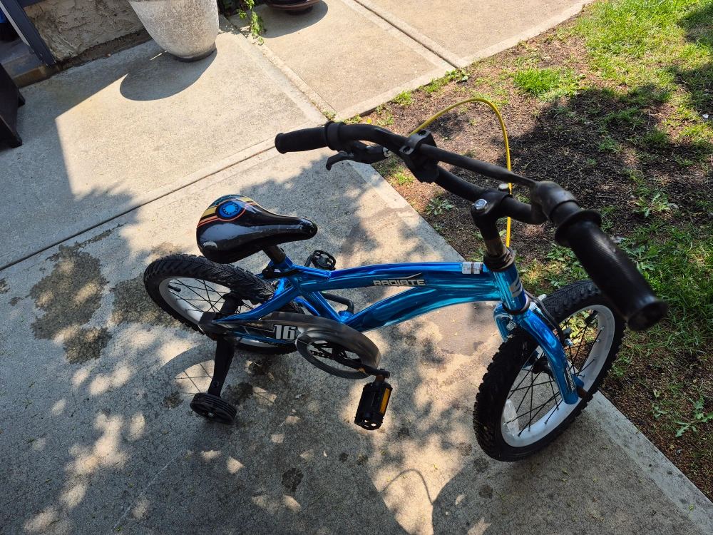 10Selling a blue Radiate kids' bike! It's a 16-inch bike, perfect for learning to ride. The tires are size 16 x 1.75. Great for kids who are just starting out