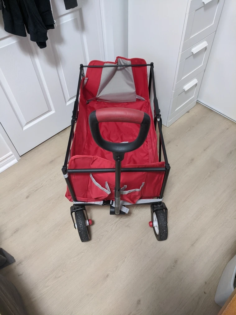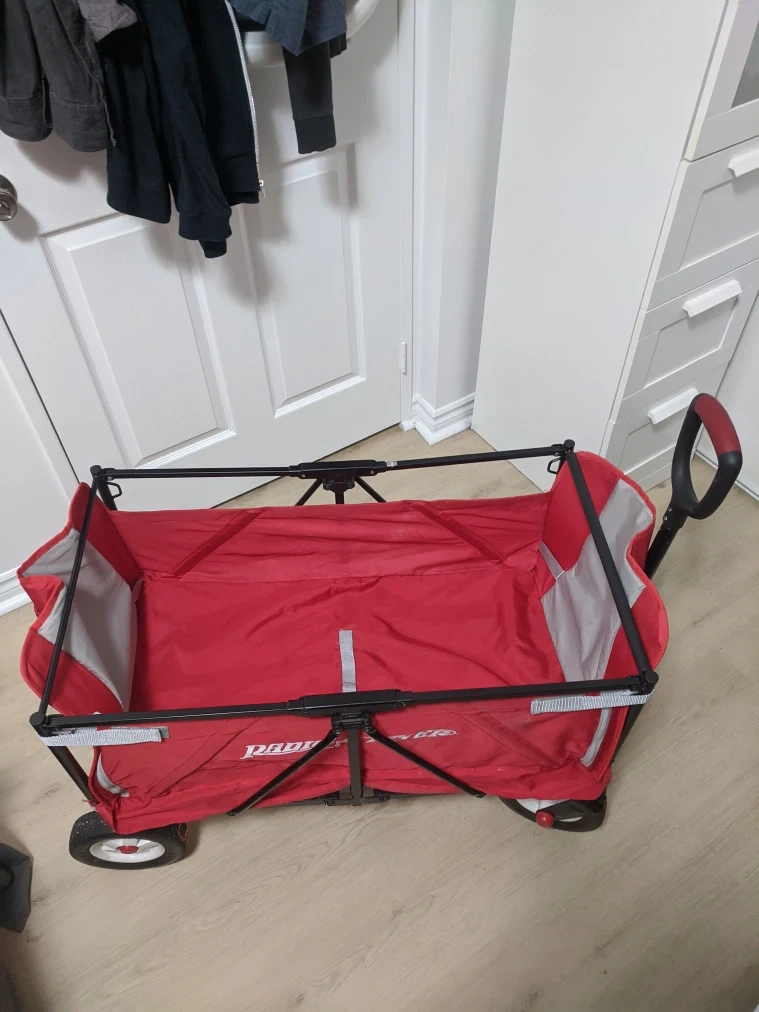 Selling a Radio Flyer Fold Wagon! It's in great shape and ready for new adventures. This wagon easily folds for storage and transport, making it perfect for families on the go. but it's not for babies or kids. it's only for staff. size:18”x33"x13"(height, no wheels) Pick up at 195 Merton Street Toronto or pick up at subway station Davisvill. And I can deliver it to you house but you need to pay me another $3. Thanks.