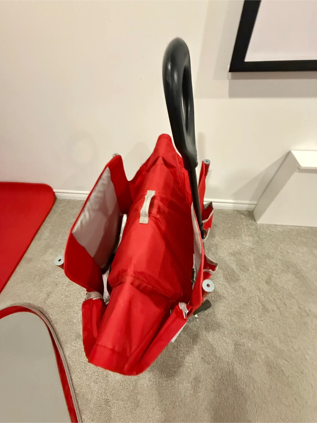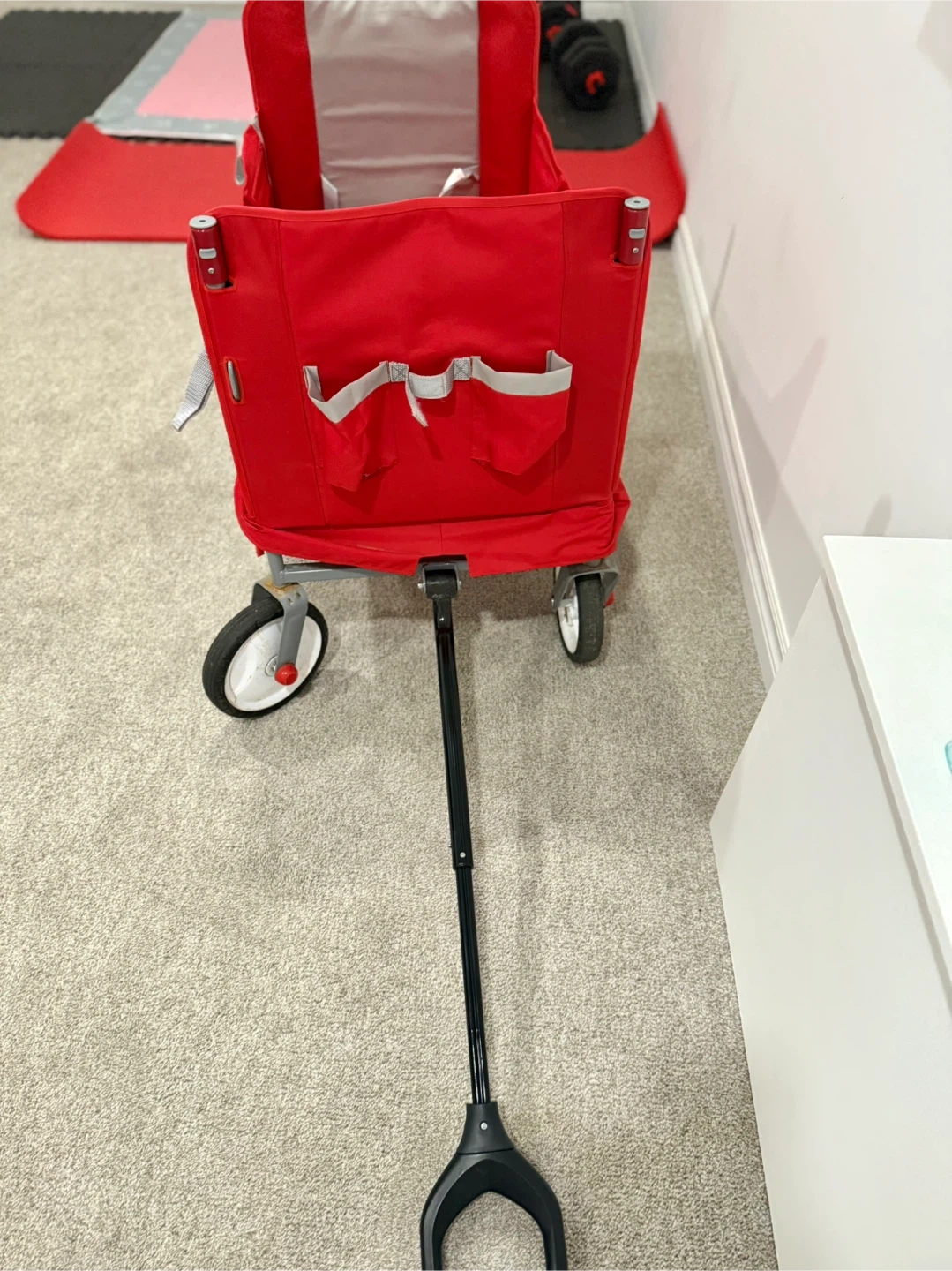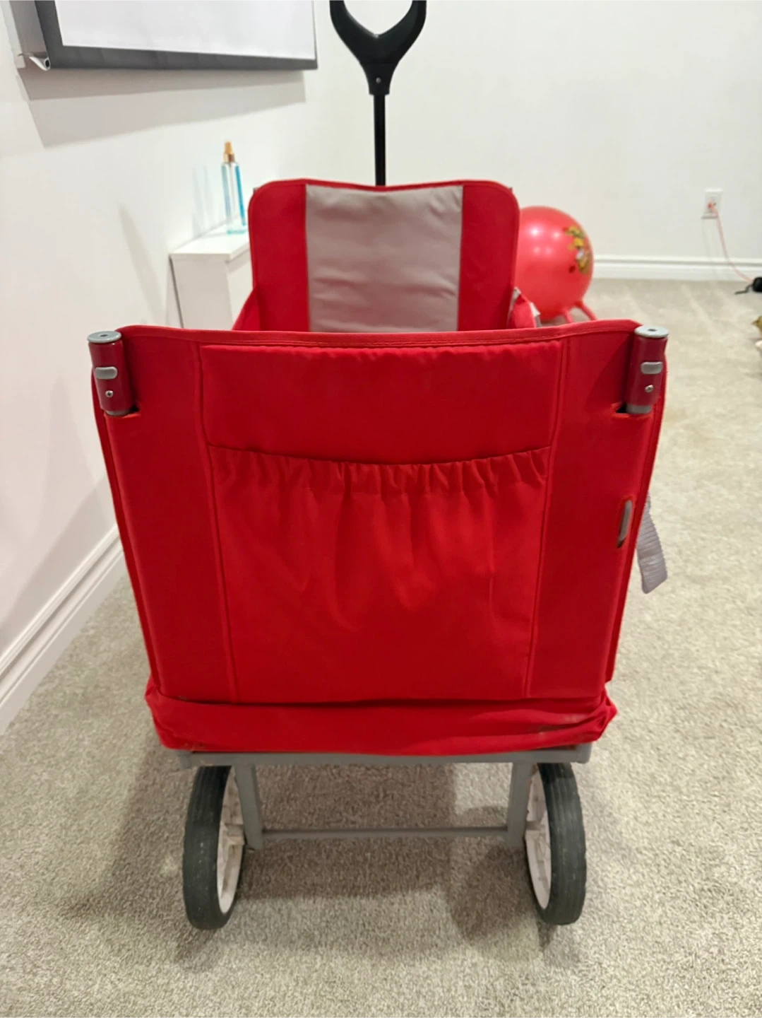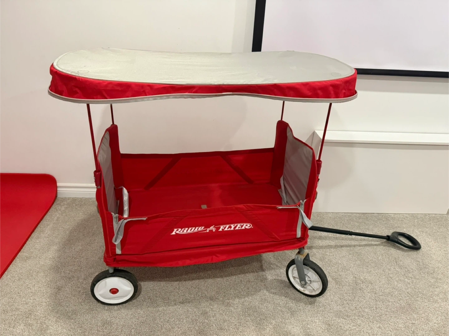 Gently used and in excellent condition This versatile collapsible wagon has 3 riding features: 1. Hauling – carry all your gear with ease; 2. 2 Rider Seating – comfortable space for kids; 3. Bench Seating – unzip the sides to instantly create a bench. ✅ Easy one-hand fold for quick storage and portability ✅ Canopy for shade and protection ✅ Strong, durable, and perfect for family outings, park trips, or travel Used but very well kept.