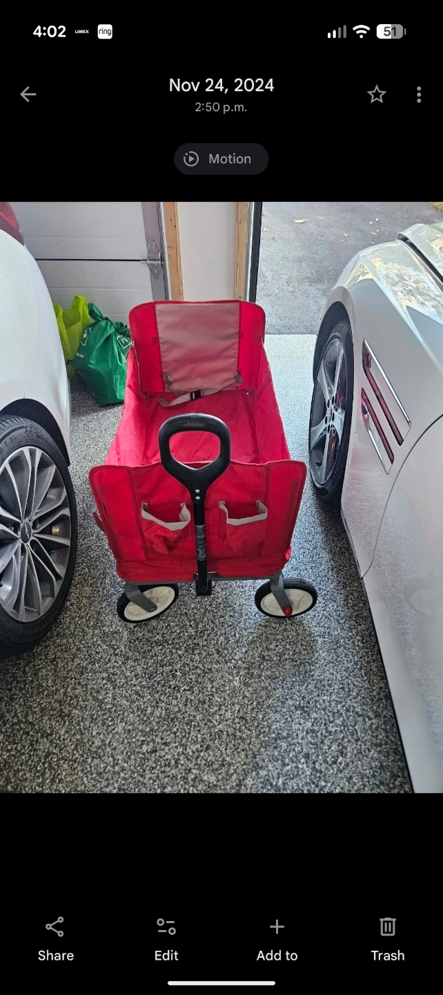 10I'm selling a red folding wagon! It's in great shape and perfect for hauling things around. It folds up easily for storage and transport. Great for kids, groceries, or anything else you need to move!