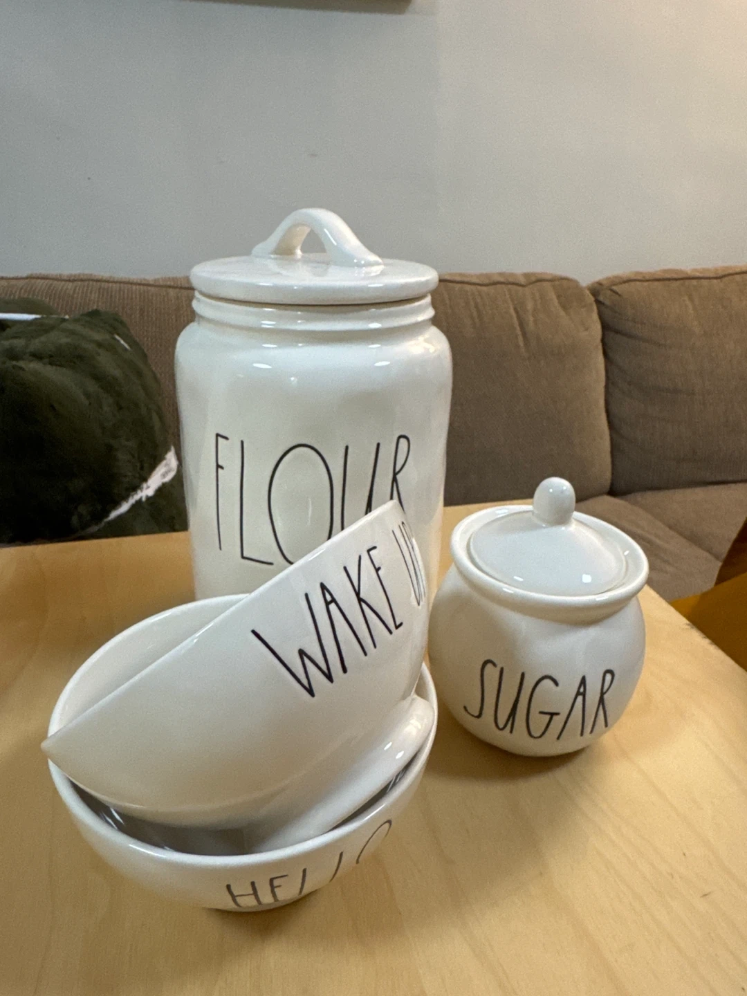 48Hello Karroters! Giving away a cute Rae Dunn canister set! Includes a flour canister, a sugar canister, and two bowls. They were never used! Ready to make part of your home ๐ฅ