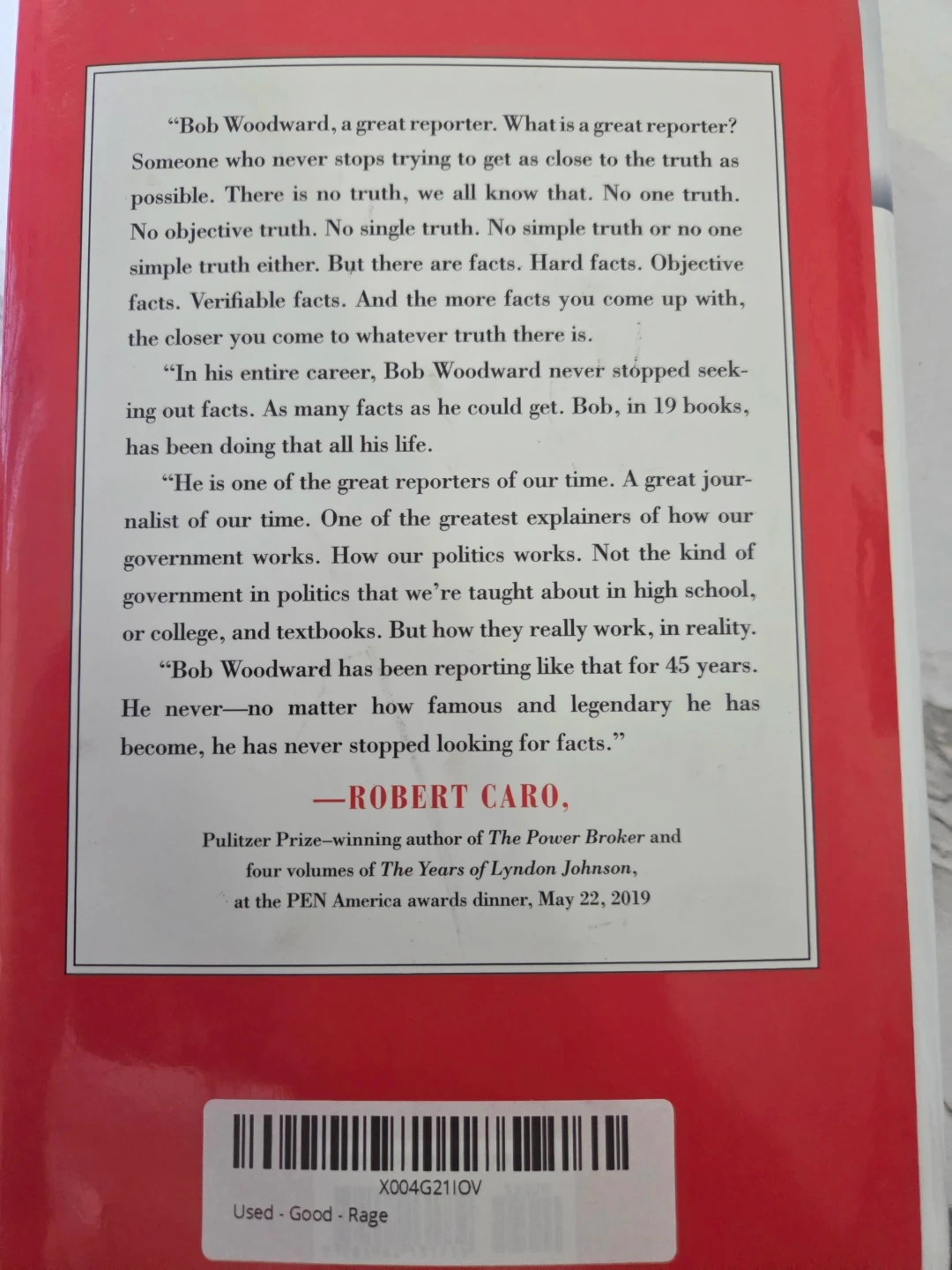 10Selling the book Rage by Bob Woodward. It's a good read!