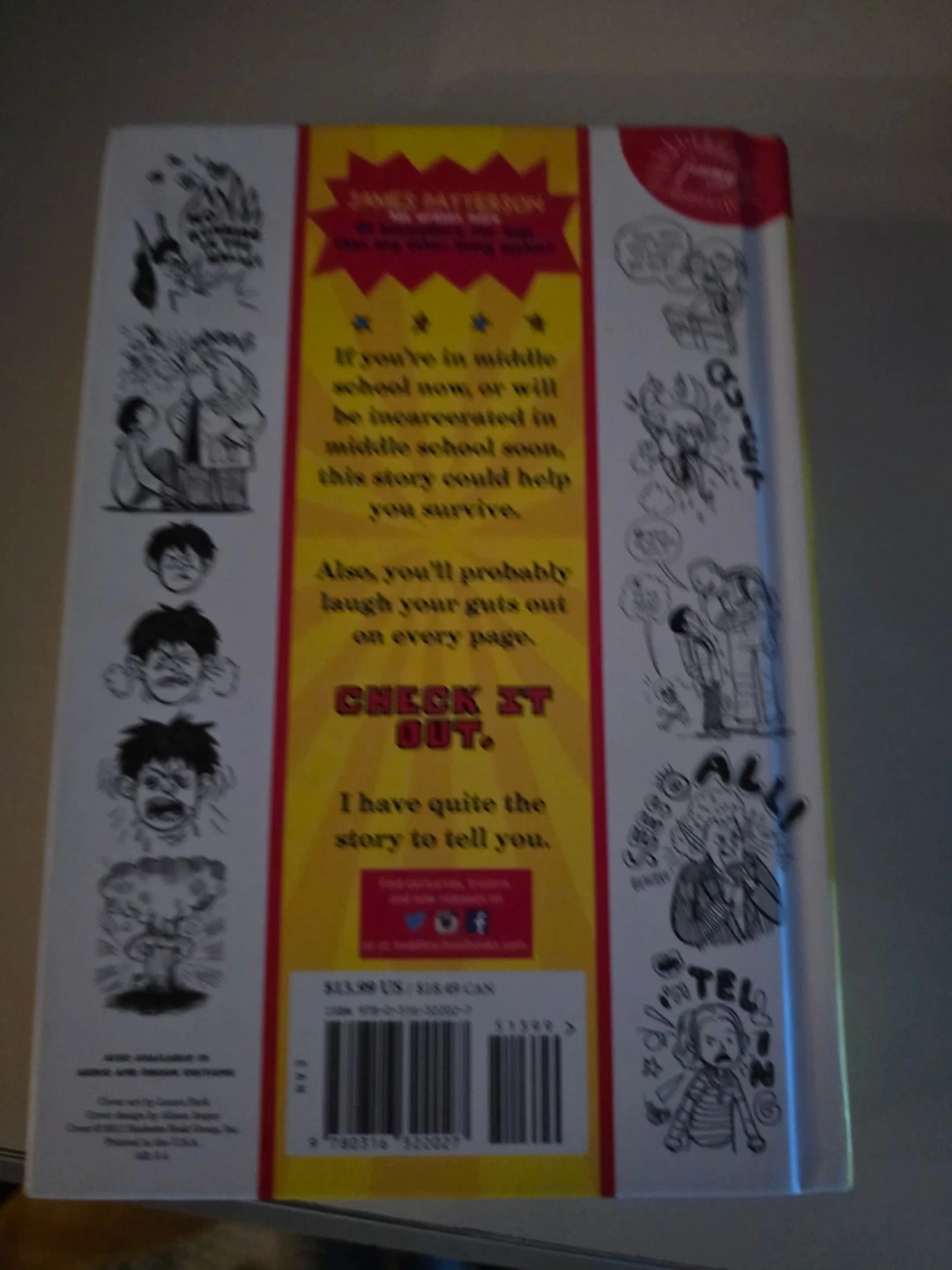 James Patterson and Chris Tebbetts' Middle School: The Worst Years of My Life. This book is about surviving middle school! It's packed with laughs on every page.