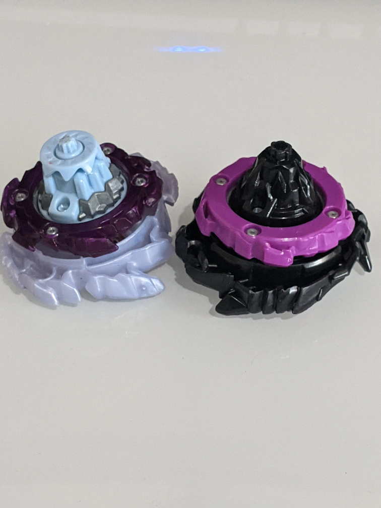 Raid is a left spinning attack type Speedstorm beyblade and Demise Devolos is a right spinning balance type Speedstorm beyblade