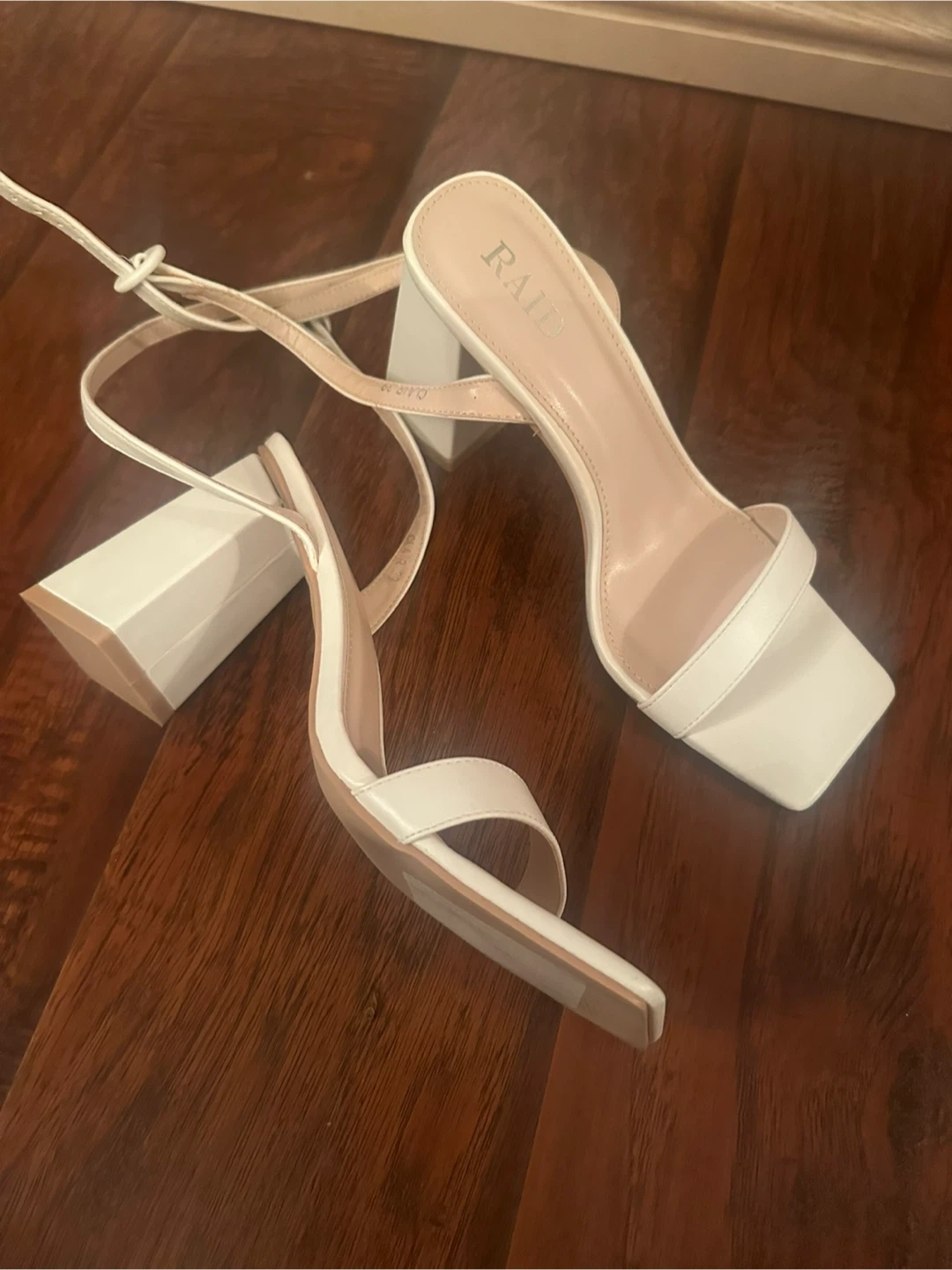 Selling a brand new pair of Raid heels in white! They feature a square toe and wrap around ankle straps. Perfect for a night out or special occasion!