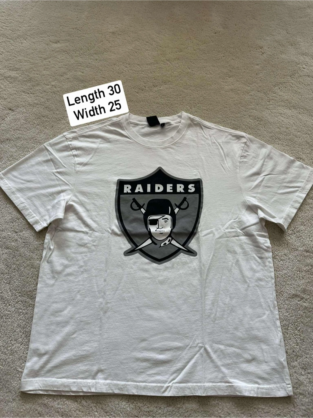 Selling a Raiders T-shirt. The length is 30 inches and the width is 25 inches. Great for any Raiders fan!