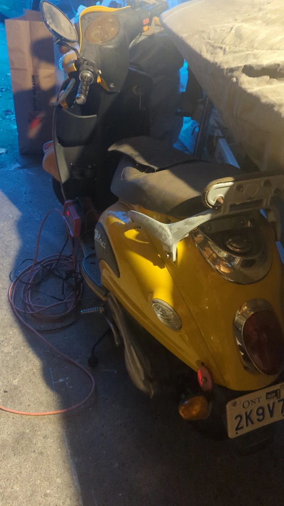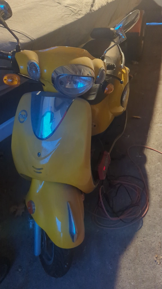 Yellow scooter, used condition, needs some TLC.