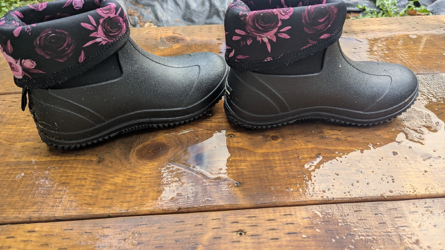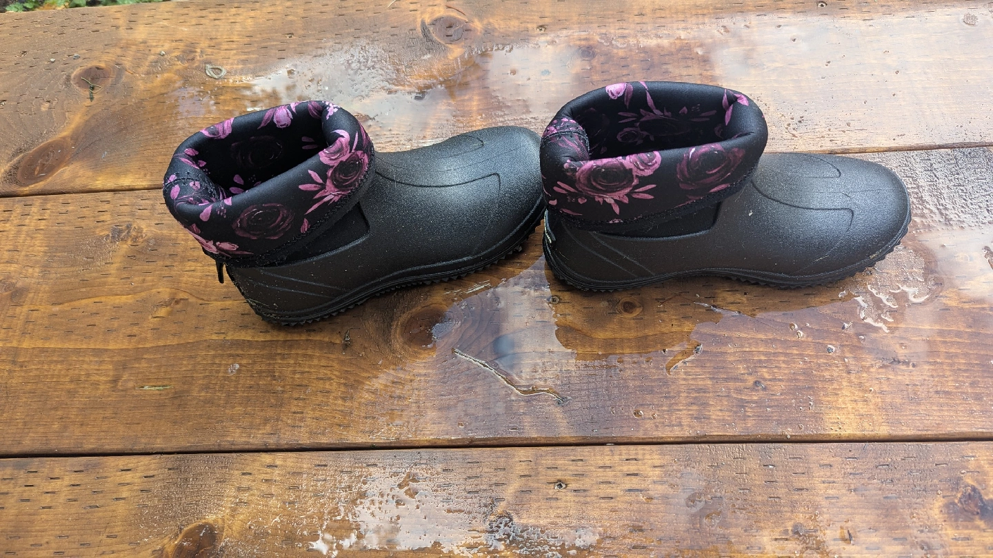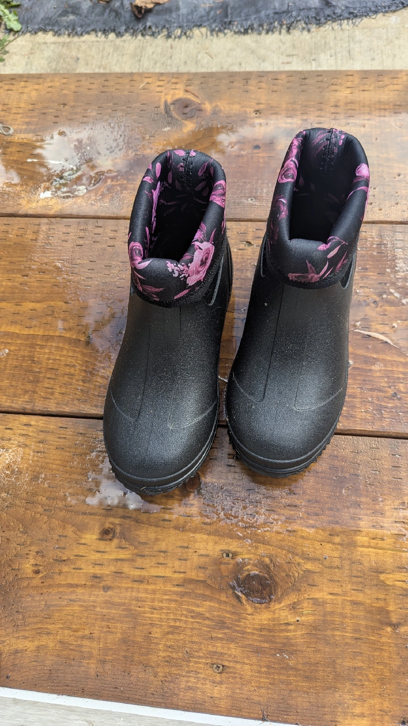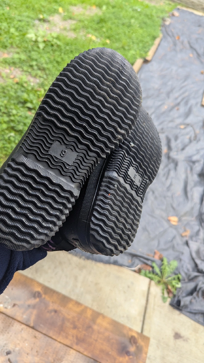 Size 9 in great condition, essentially brand new rain boots from Canadian Tire. Only worn once and they unfortunately don't fit my feet.