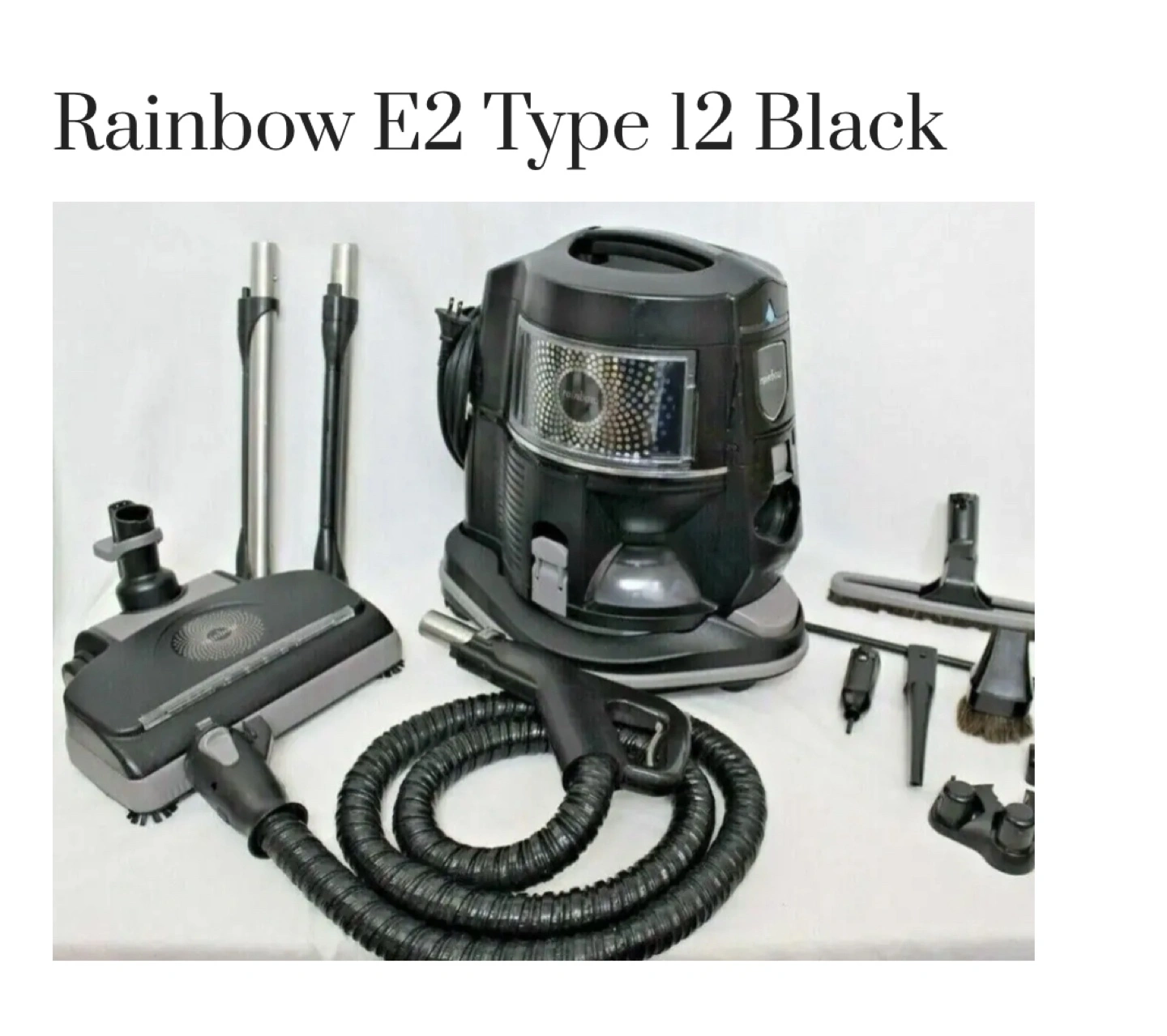 Selling a Rainbow E2 Type 12 black vacuum cleaner! It comes with all the attachments you see in the picture. Great for keeping your home clean and tidy. If you're interested, send me a message!