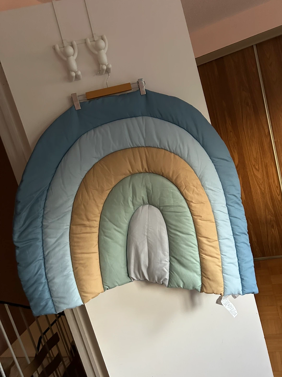 Rainbow play mat in great condition (never used, tag just removed). Perfect for tummy time or just a comfy spot for your little one to play. It is a soft and padded surface, made of polyester, in neutral tones. Measures 1 metre at greatest length, and 75 cm at greatest height. šMeetups in south Markham / north Scarborough area - cash only. From smoke free household.