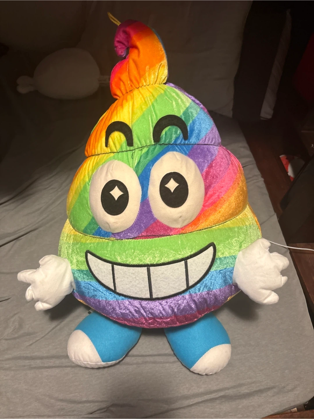 14Selling a colourful rainbow poop emoji plush! It's in great condition and ready to bring some fun to your space I won it at arcade and it is awsome lots of memories but times are tuff