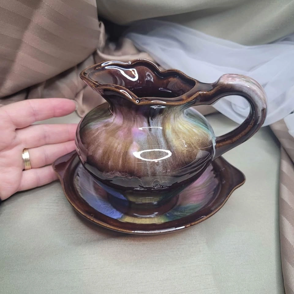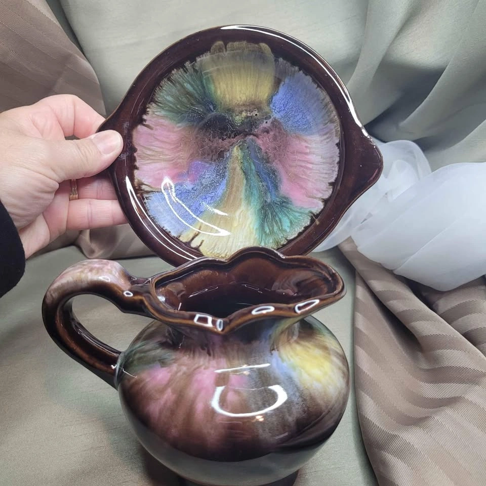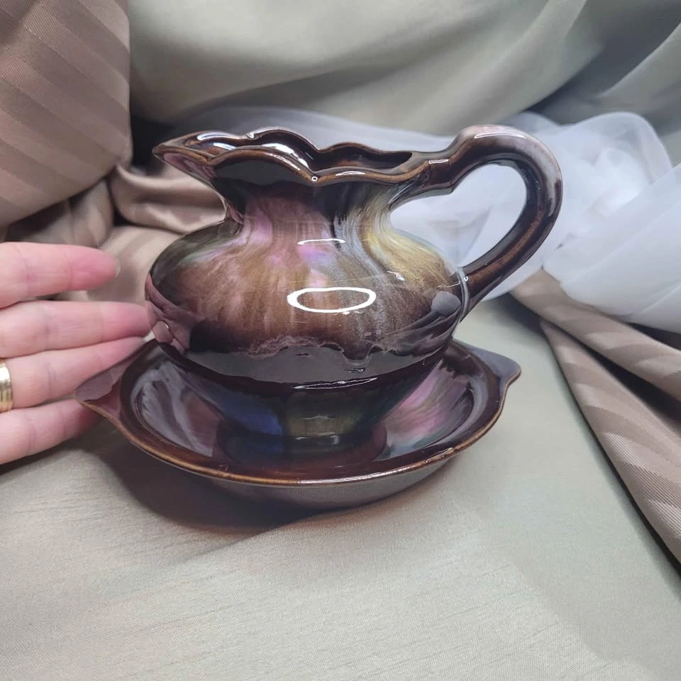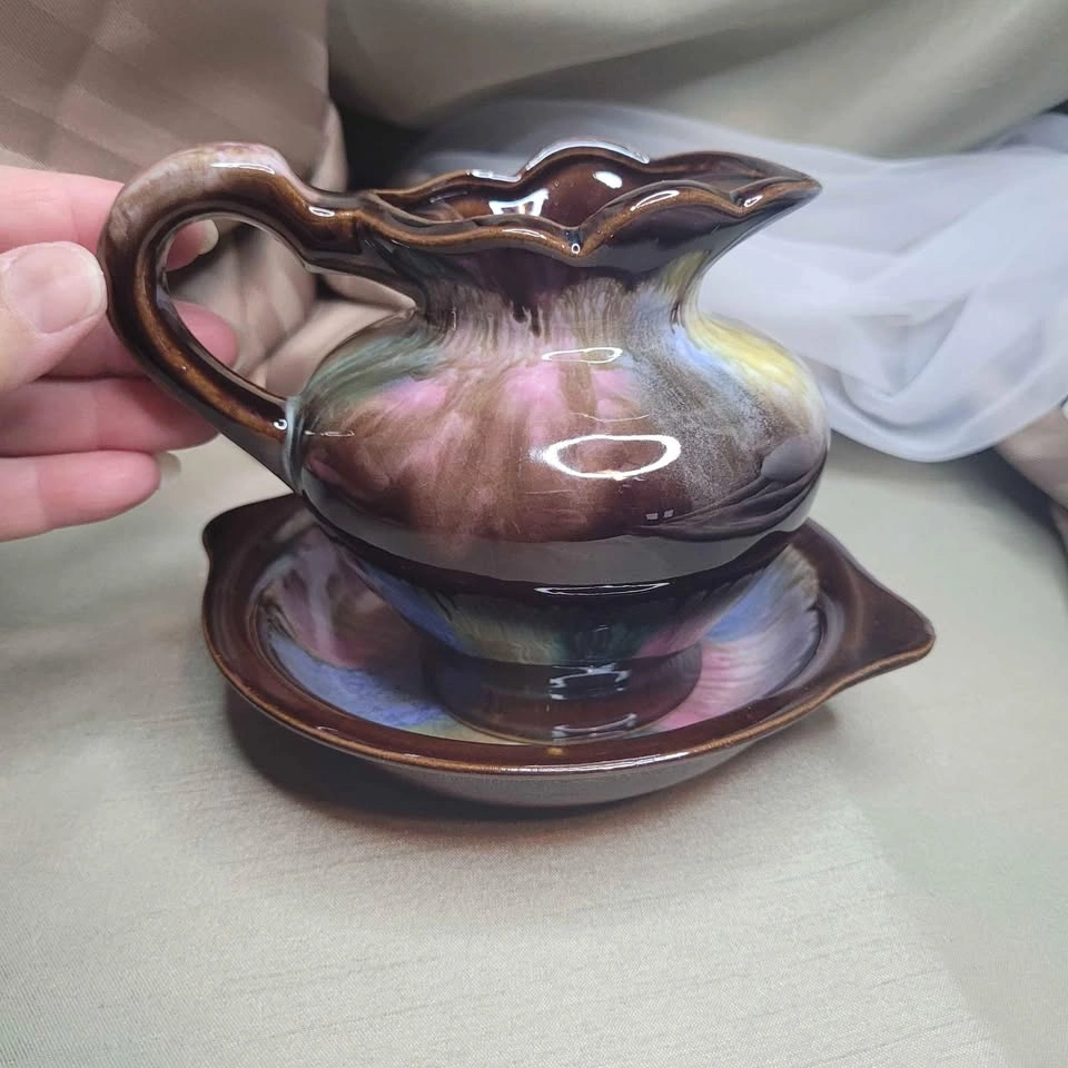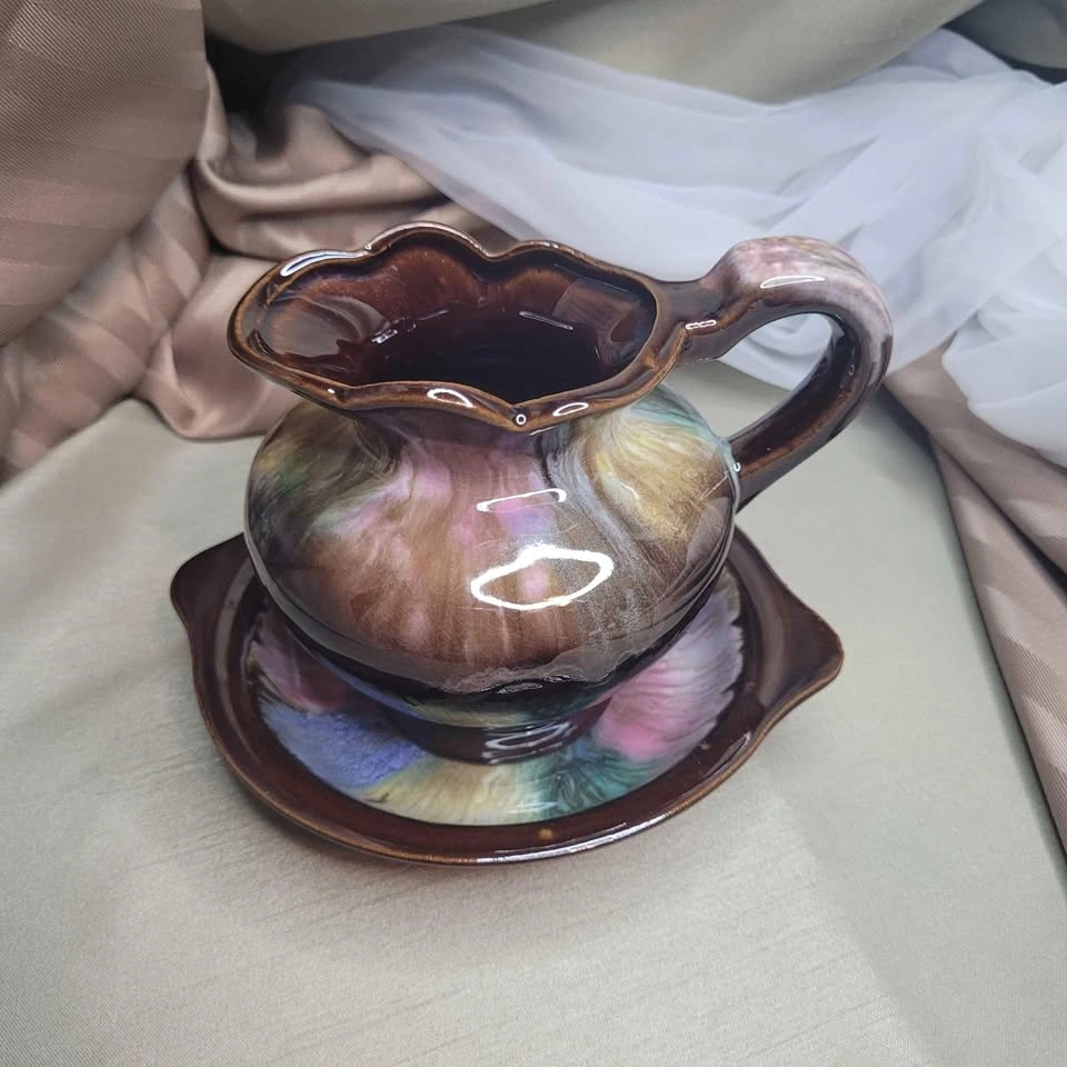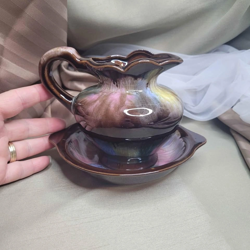 Beautiful Vintage Rainbow Pottery Glaze Mini Jug & Basin 5" x 6" 2 pc Set Beautiful Condition no chips no cracks please see all pictures Please See all my Other Listings, Bundle & Save for a Better Deal! Located in Bradford, May be able to Meet, Thank you so much for Looking!