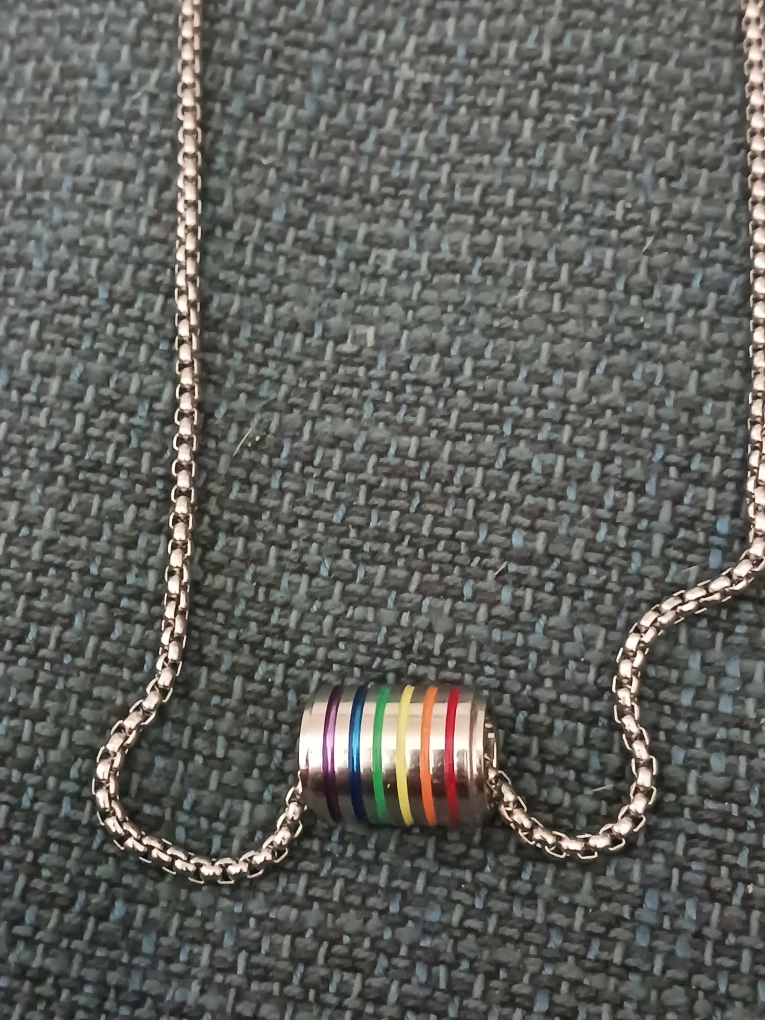 A lovely necklace with a rainbow pride design! It's in great condition and ready to add a pop of colour to your outfit.