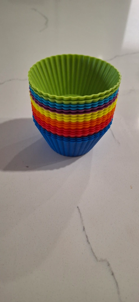 15Here's a set of 18 silicone cupcake liners in a fun rainbow of colours! They're perfect for baking and are easy to clean. Add a splash of colour to your baking creations