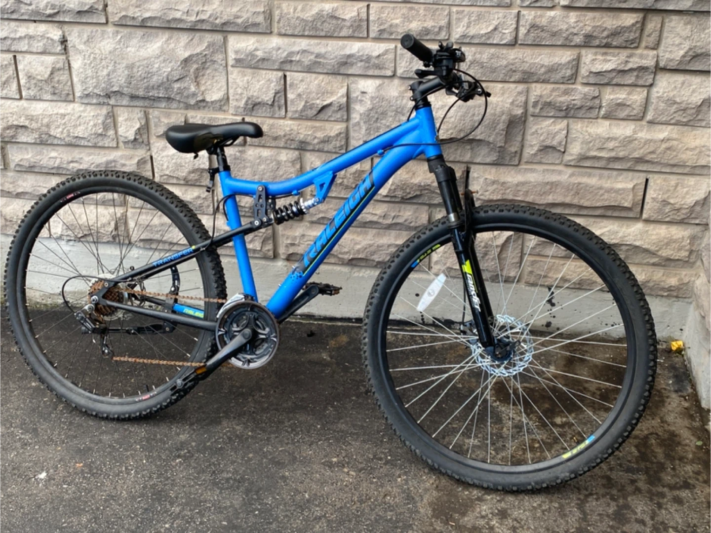 41Selling a Raleigh Transporter mountain bike in blue. It's a great bike for hitting the trails or just getting around What if needs Front break pads Rear calliper and cable A new chain(recommended because it slips a lot