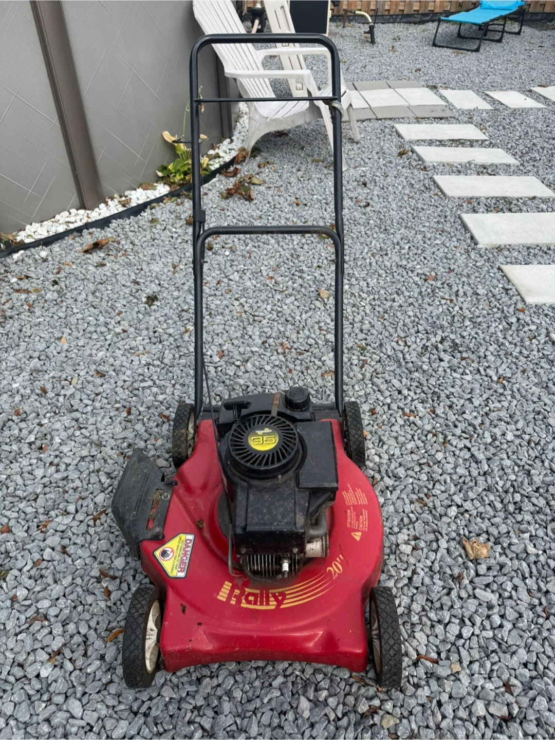 Selling a used Rally 20" lawn mower. It's in working condition and ready to help you keep your lawn looking great!