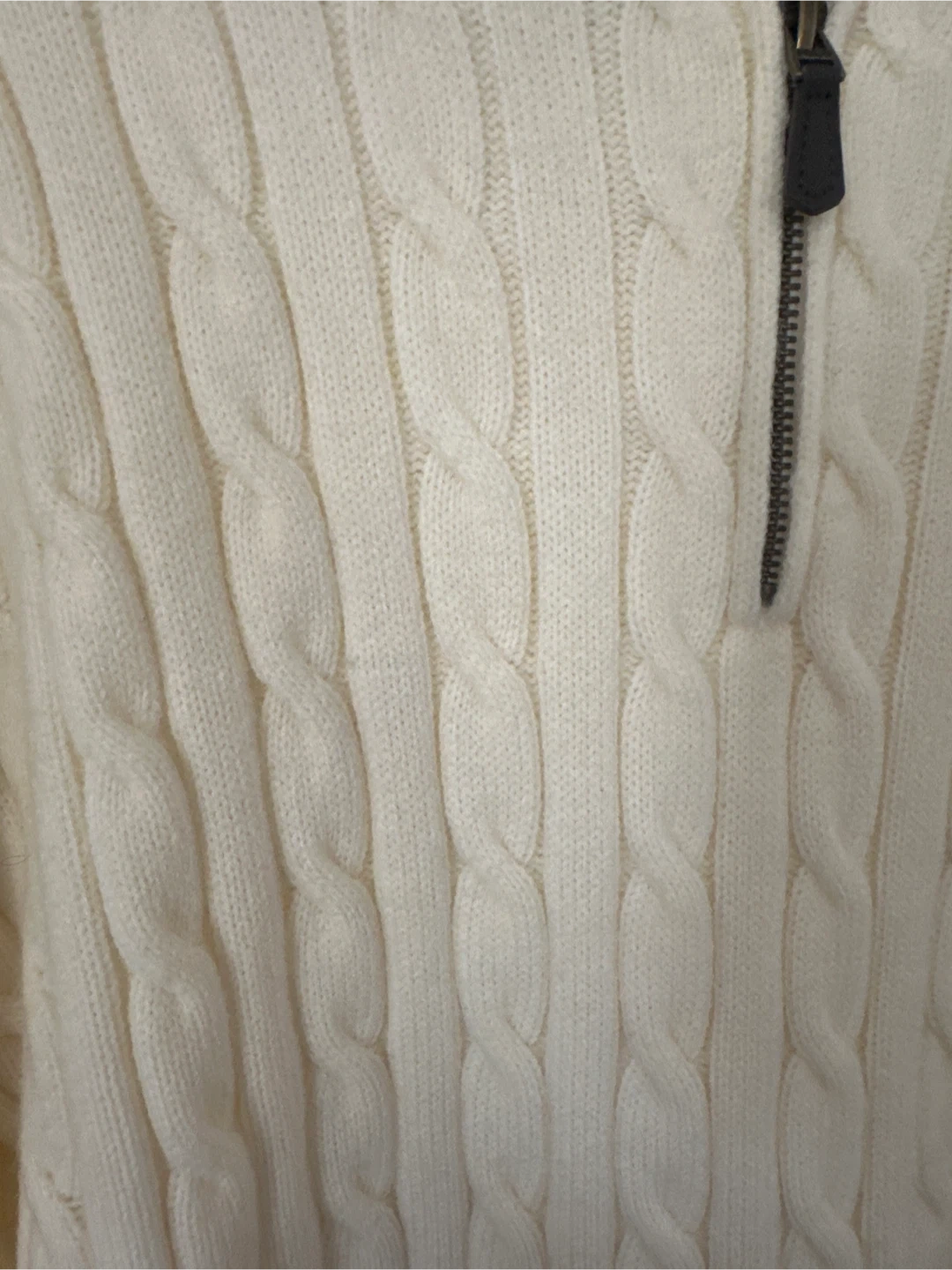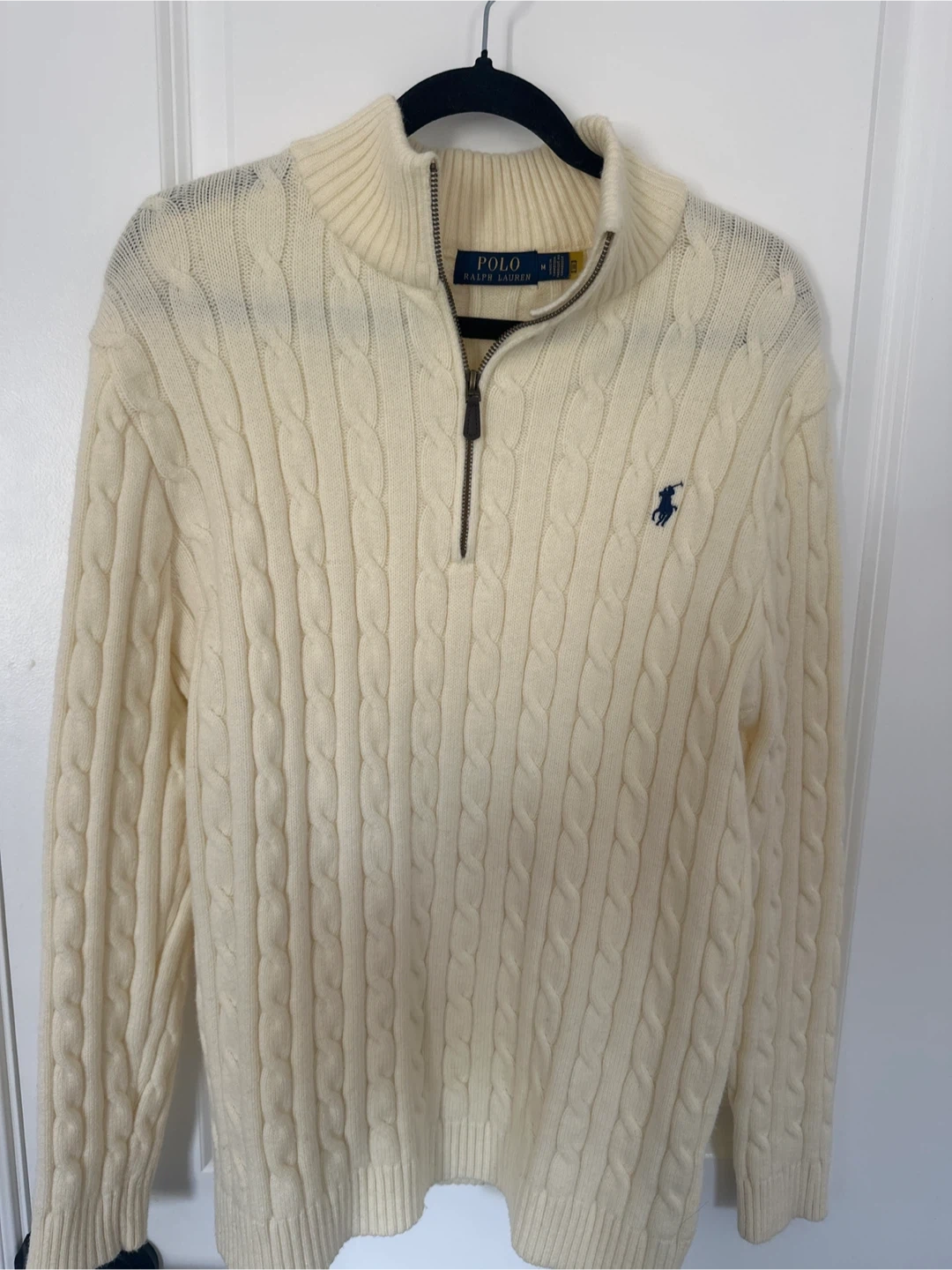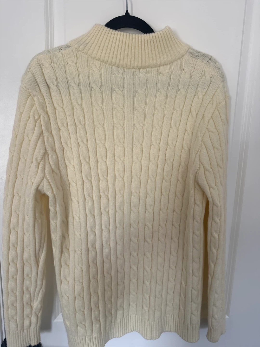 Cozy Ralph Lauren cable knit sweater in cream colour. It's a size medium and in great condition! Perfect for layering during the cooler months. The classic design and comfortable fit make it a versatile addition to any wardrobe