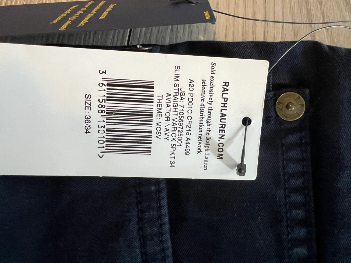98New with tags Ralph Lauren dark blue pants size 36/34 for men. Stretch Slim straight fit aviator navy. Cash please