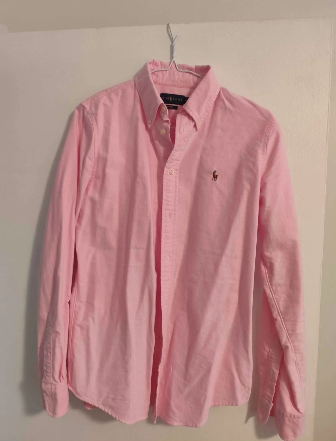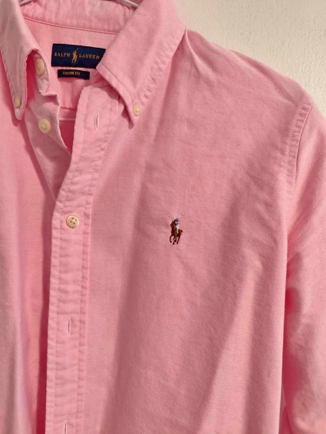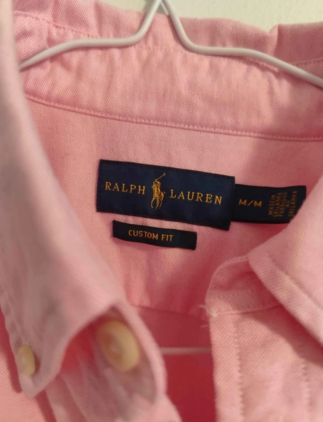 84Selling a Ralph Lauren button-up shirt in a lovely light pink! It's a custom fit and marked as size M/M. Perfect for adding a pop of colour to your wardrobe. Too tight for me. I wear classic fit now.