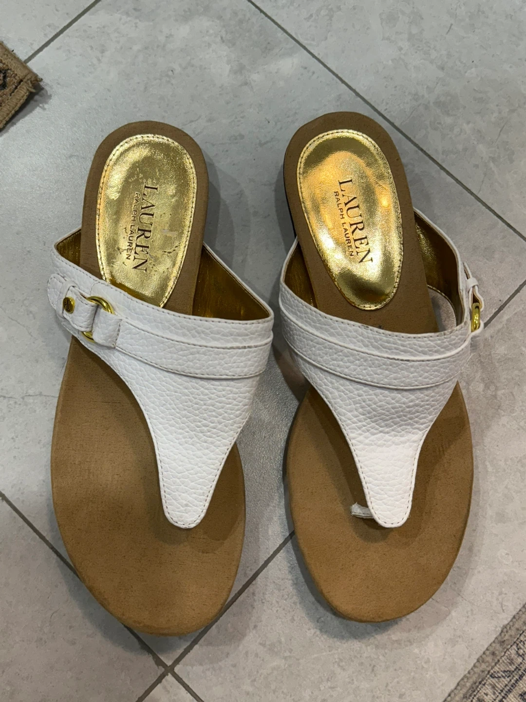 44Cute white thong sandals from Ralph Lauren! They are in good condition and ready for a new home