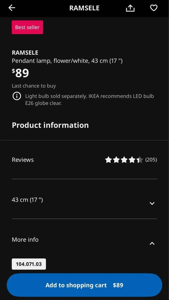 BRAND NEW RAMSELE Pendant Lamp from IKEA. NEVER USE OPENED BOX