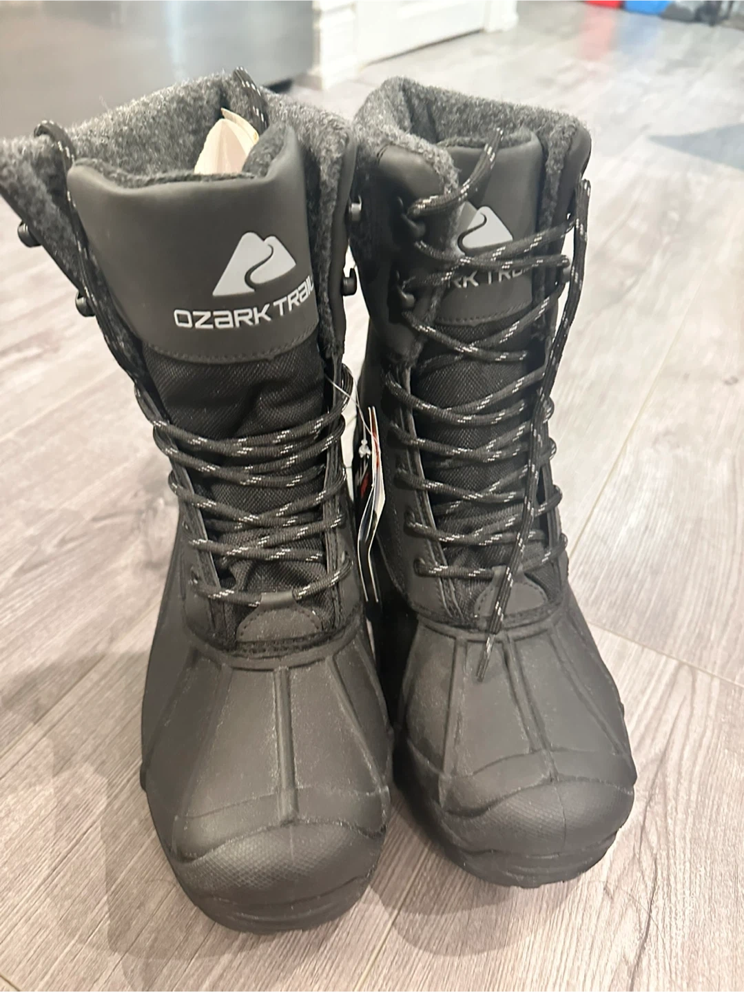 Selling a pair of Ozark Trail winter boots in size 9. They feature 3M Thinsulate insulation to keep your feet warm and cozy during the colder months. These boots are perfect for outdoor activities and snowy weather.