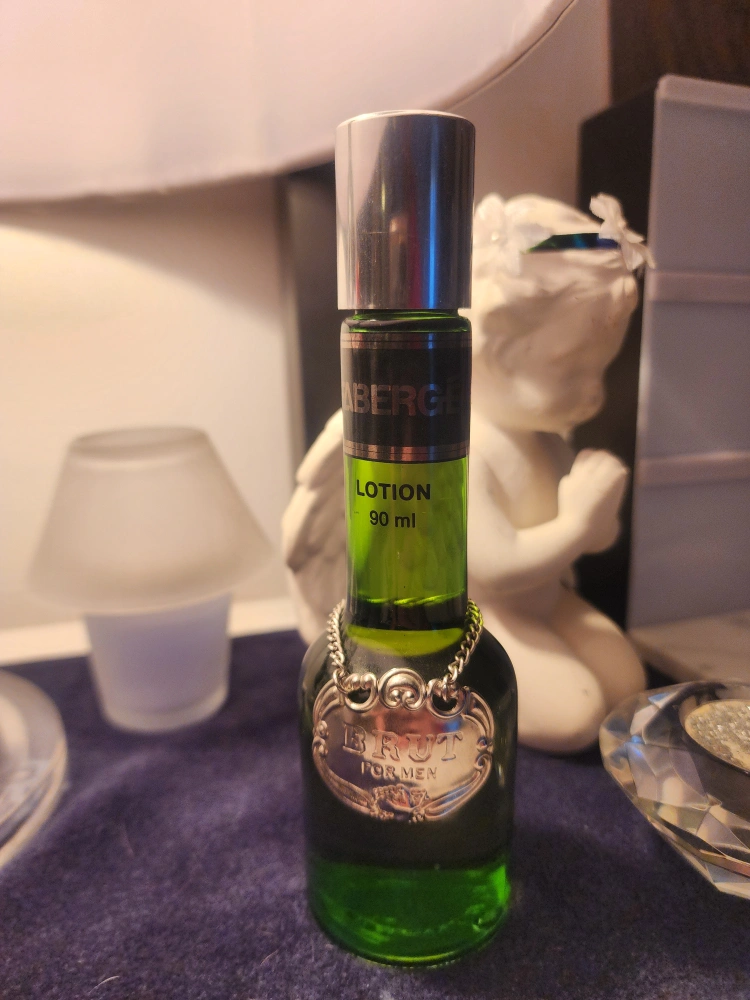 Selling a full bottle of vintage Fabergé Brut for Men lotion in a 90ml bottle from 1964, a classic scent from a bygone era. It's a wonderful piece for collectors or anyone who appreciates timeless scents. Who knows, maybe spritzing on a bit of this vintage Brut will transport you back to the days of disco and leisure suits! But if the ad is still up, yes, it's still available! Given its age and rarity, I'm pricing it accordingly. Snap it up before someone else does!