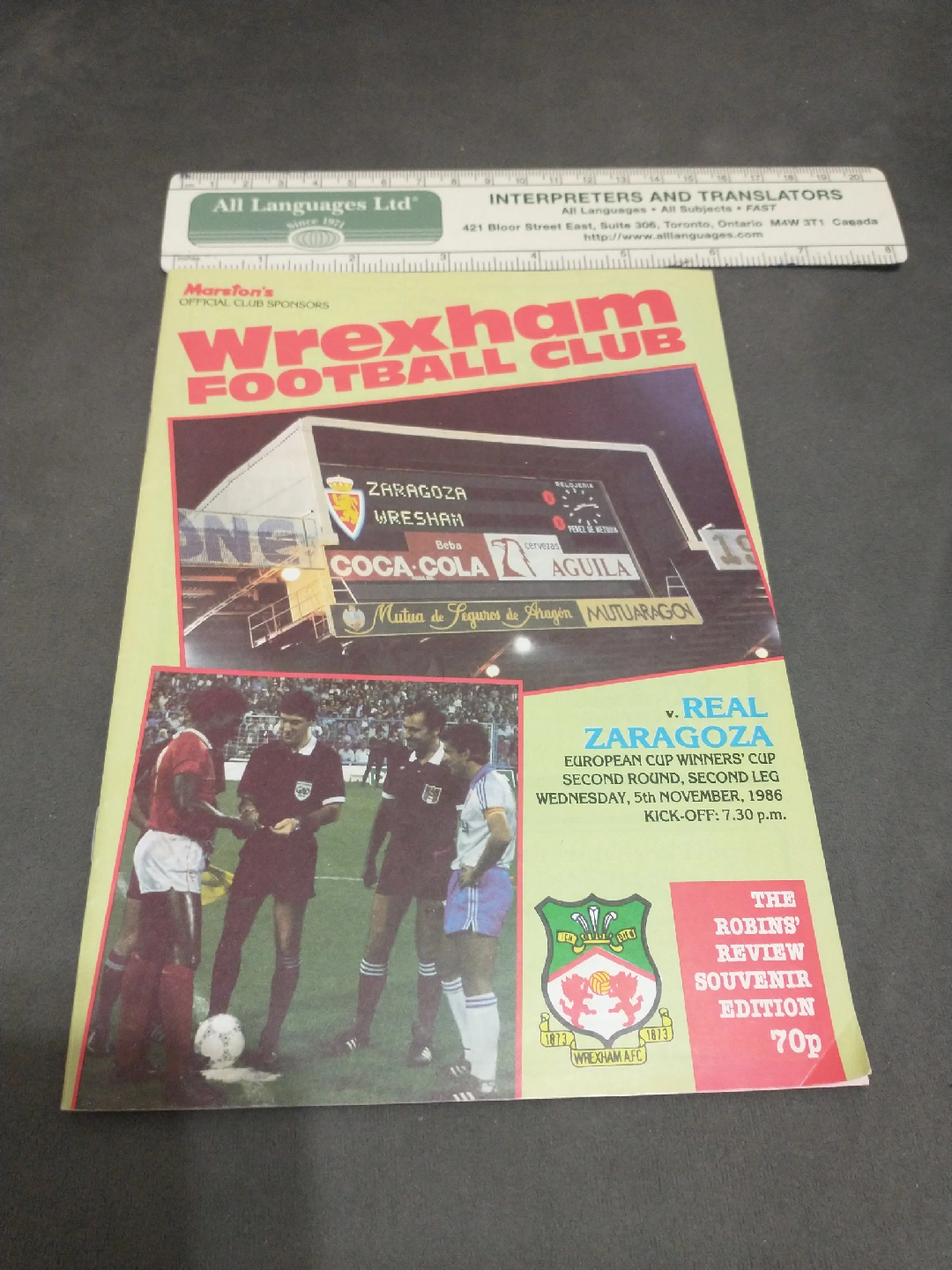 1986 Wrexham vs Real Zaragoza Cup Winner's Cup program, 32 pages. In box 1. To see my sports magazines, programs and guides, please search VVV. Slava Ukraini! Please note, I am not a dealer nor business, I'm simply selling my collections. I don't buy or trade, nor meet or deliver... all purchases can be picked up in the lobby of my building of residence at Broadview/Pottery. I will gladly ship most items but will not pay postage nor accept responsibility for loss. I welcome any questions but at the first sign of insolence or trolling, the messager will be blocked. I stand behind all my items and offer satisfaction guarantee or full refund. Please refer to my feedback stats which reflect my high customer satisfaction. Thank you. All my items come from a Republican-free home.